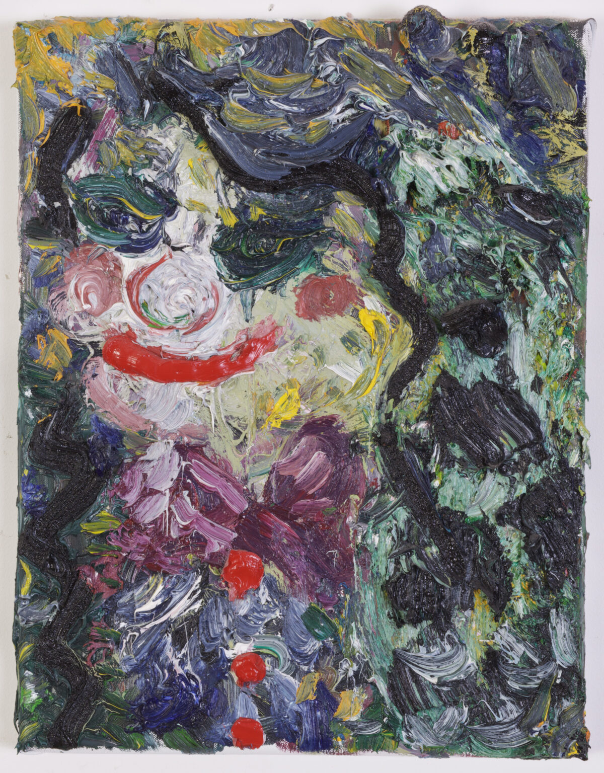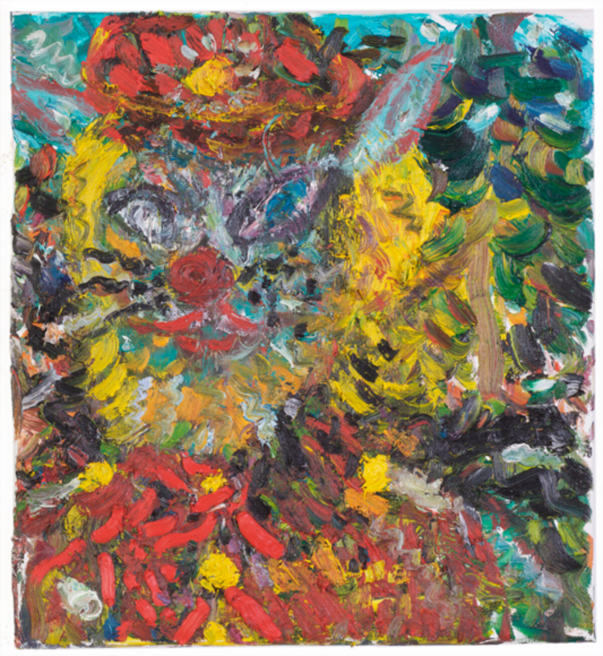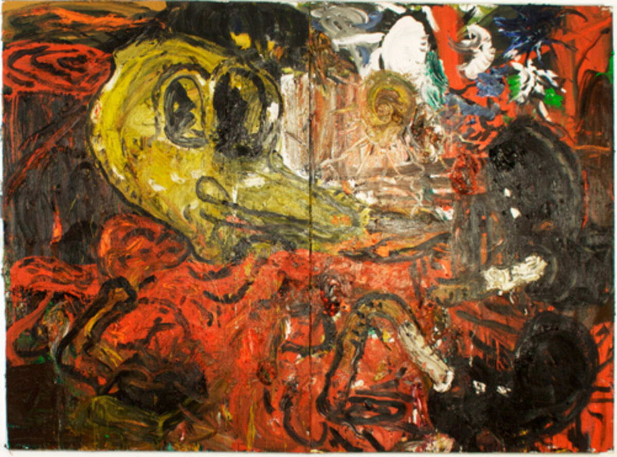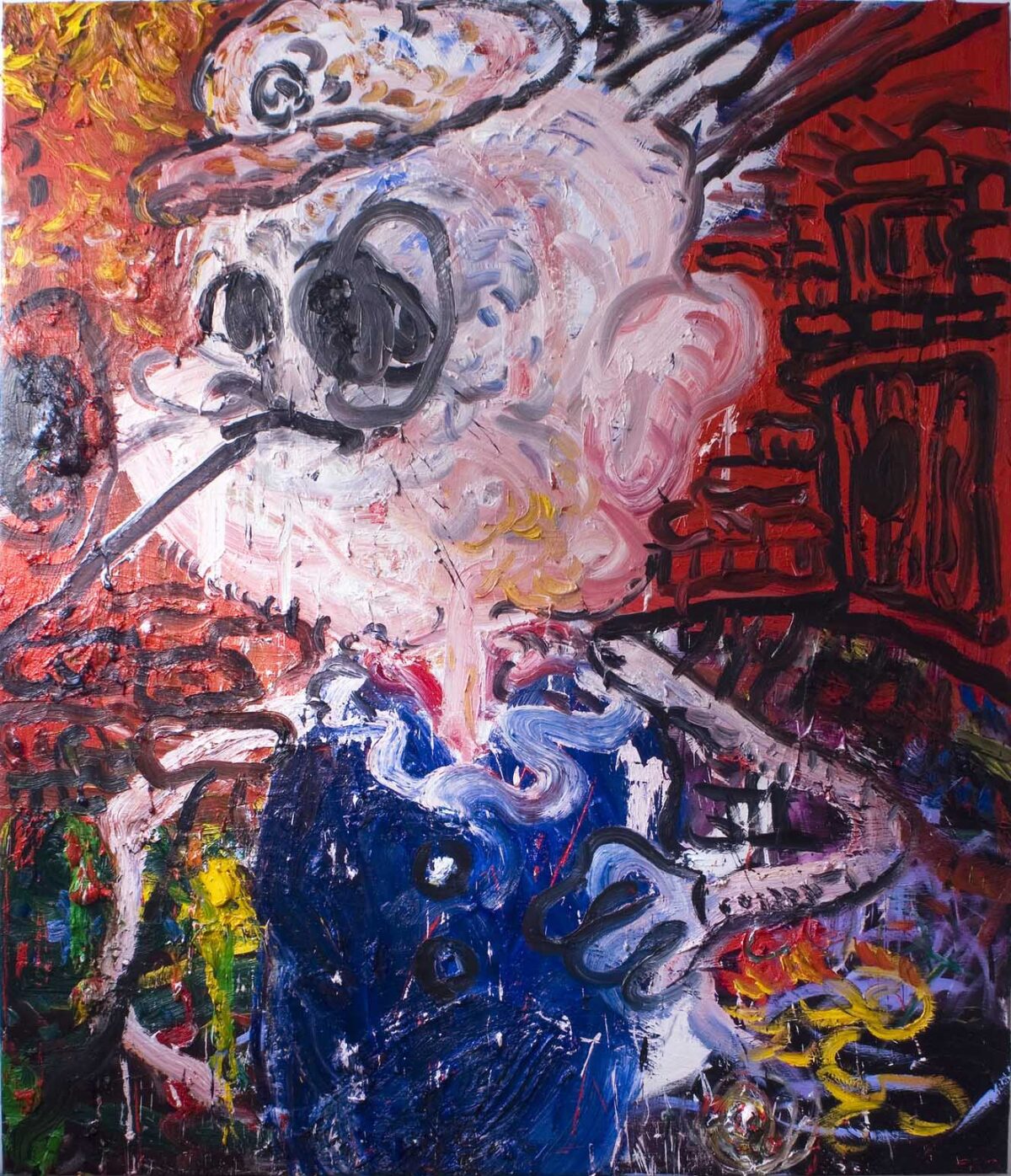But is this question really relevant anymore in a time when the boundary between art and phantasmagorical creations of mass culture become more and more thin? Eloyan’s pictures are in any case stirring, just in the way they are painted. Thick, sometimes brilliant, multi-layered colours often appear on huge surfaces with quick strokes of the brush. With the persistent gaze of spectators, contours begin to emerge, revealing, for example, a face with protruding eyes and rabbit ears. The intensity created by these images is transferred to the audience, the same as the unpredictability of what can be discovered in a painting – an unpredictability characteristic of these paintings, whose final form does not become clear until during the painting process itself.