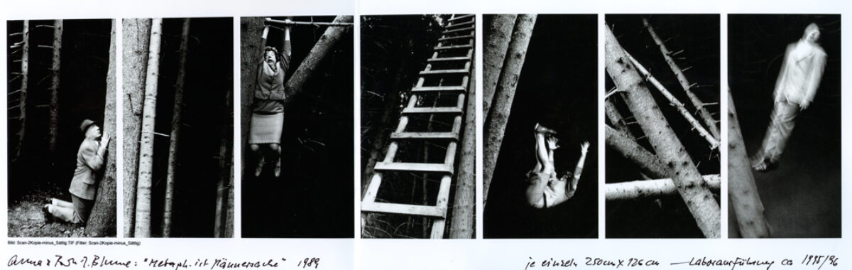 Anna und Bernhard Blume stellen sich diesem Konflikt in ihrer Arbeit ganz bewusst. Ihre Welt, die sie hauptsächlich vor der Schwarz-Weiß-Kamera erschaffen, zeigt den Versuch des deutschen Spießbürgers, mit irrationalen Ängsten, Trieben und Fantasien umzugehen, ohne dabei die erhabene Rationalität zu verraten, zu der die großen deutschen Philosophen aufriefen. Das Ergebnis ist stets dasselbe: Chaos, Entgleisung und Katastrophe.