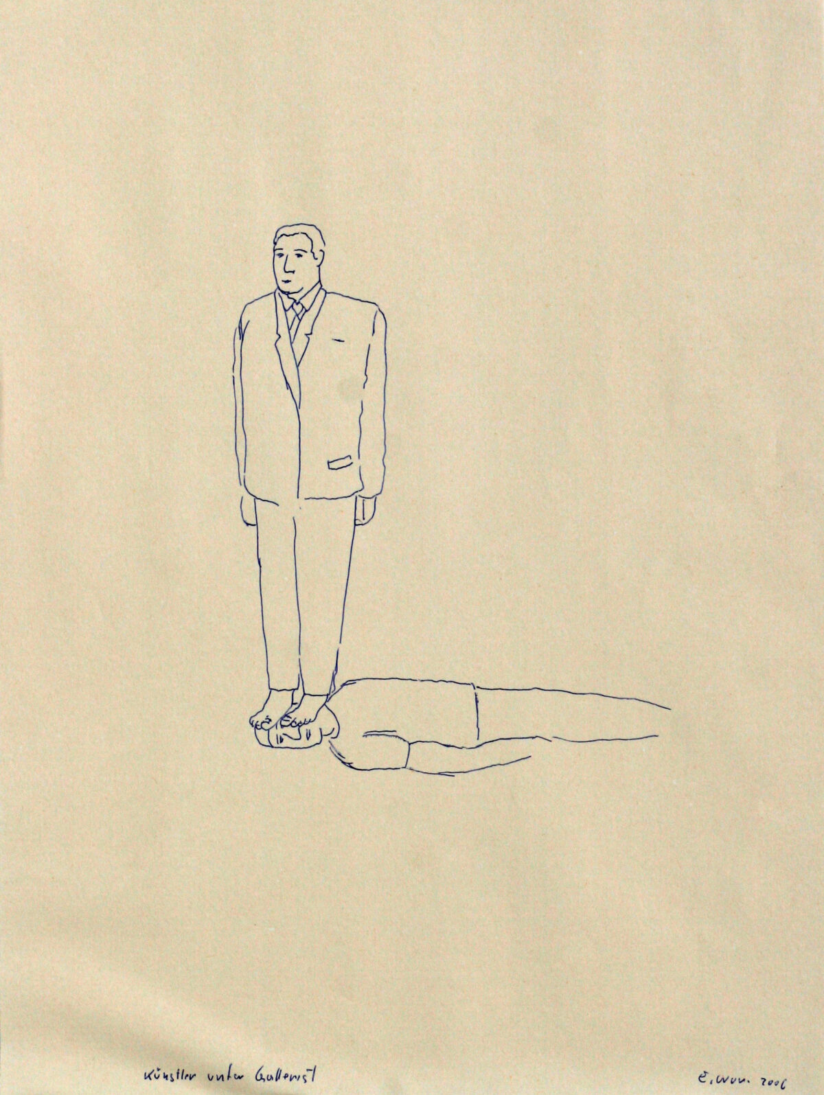 Seit Ende der 1980er Jahre experimentiert Wurm nicht nur mit sich selbst (die Fotos, auf denen er mit Bleistiften in der Nase und in den Ohren, mit einem Radiergummi im Mund, mit vergrößerten Linsen auf den Augen oder mit einer Banane zwischen den Beinen posiert, sind wohlbekannt), sondern auch mit dem Publikum. Doch Besucher werden nicht für 15 Minuten zu Prominenten, wie es Andy Warhol einst erdachte, sondern für eine Minute zu einer Skulptur. Jeder und alles kann Kunst sein, wie es der deutsche Künstler Joseph Beuys erklärte. Und Wurm scheint von dieser Vorstellung angetrieben zu sein. Doch seine bizarre, manchmal sarkastische Art, Trivialität in Kunst zu verwandeln, offenbart auch den Humor dieser Idee. Ist eine Person mit einem Eimer auf den Schultern oder mit dem Kopf in einem Hundehäuschen Kunst?