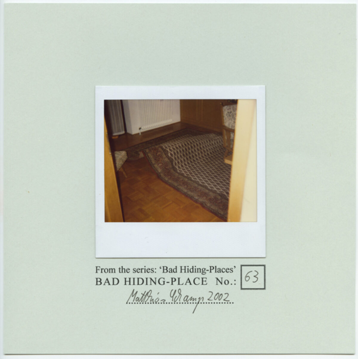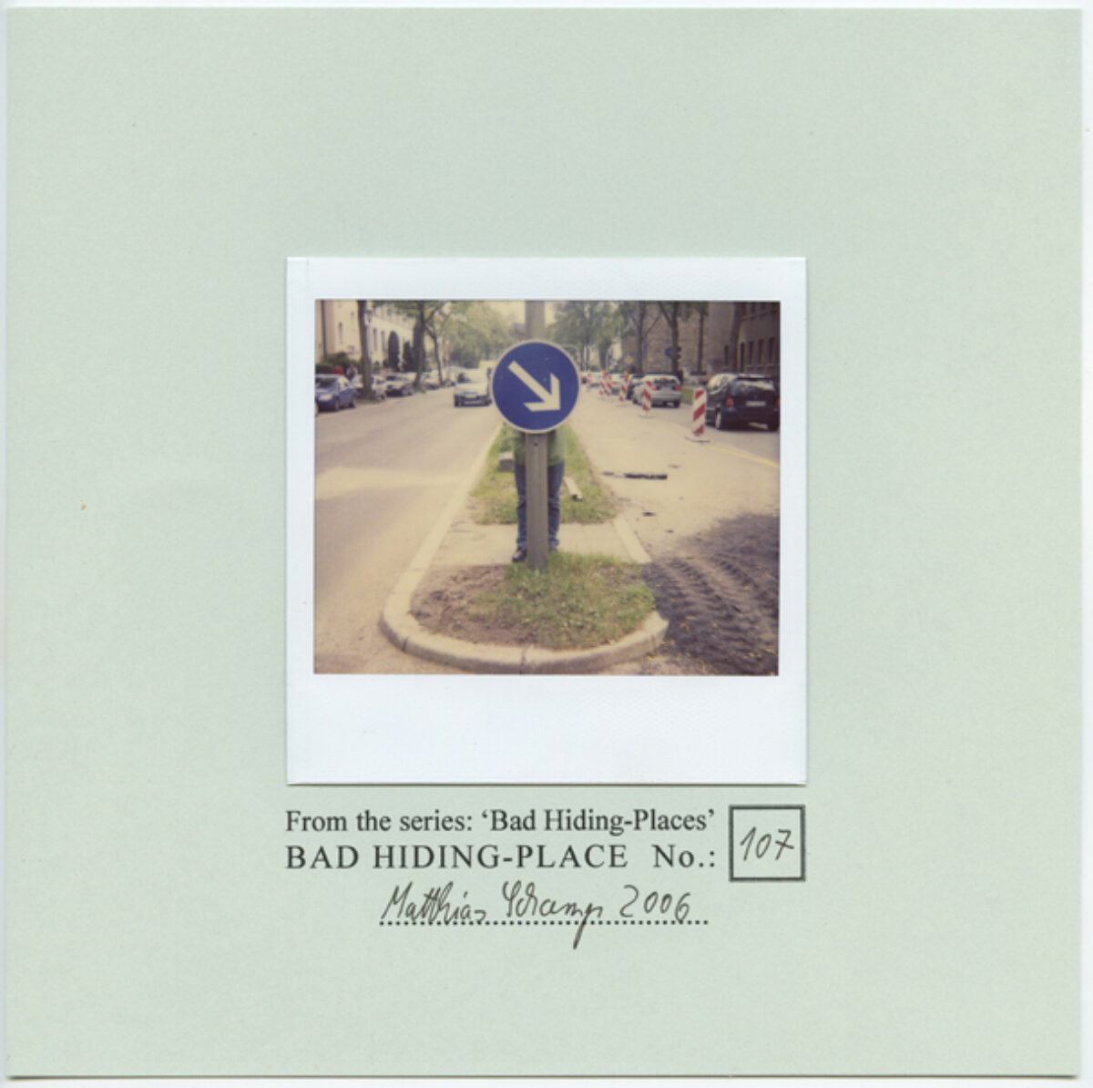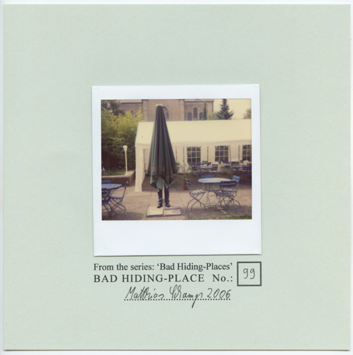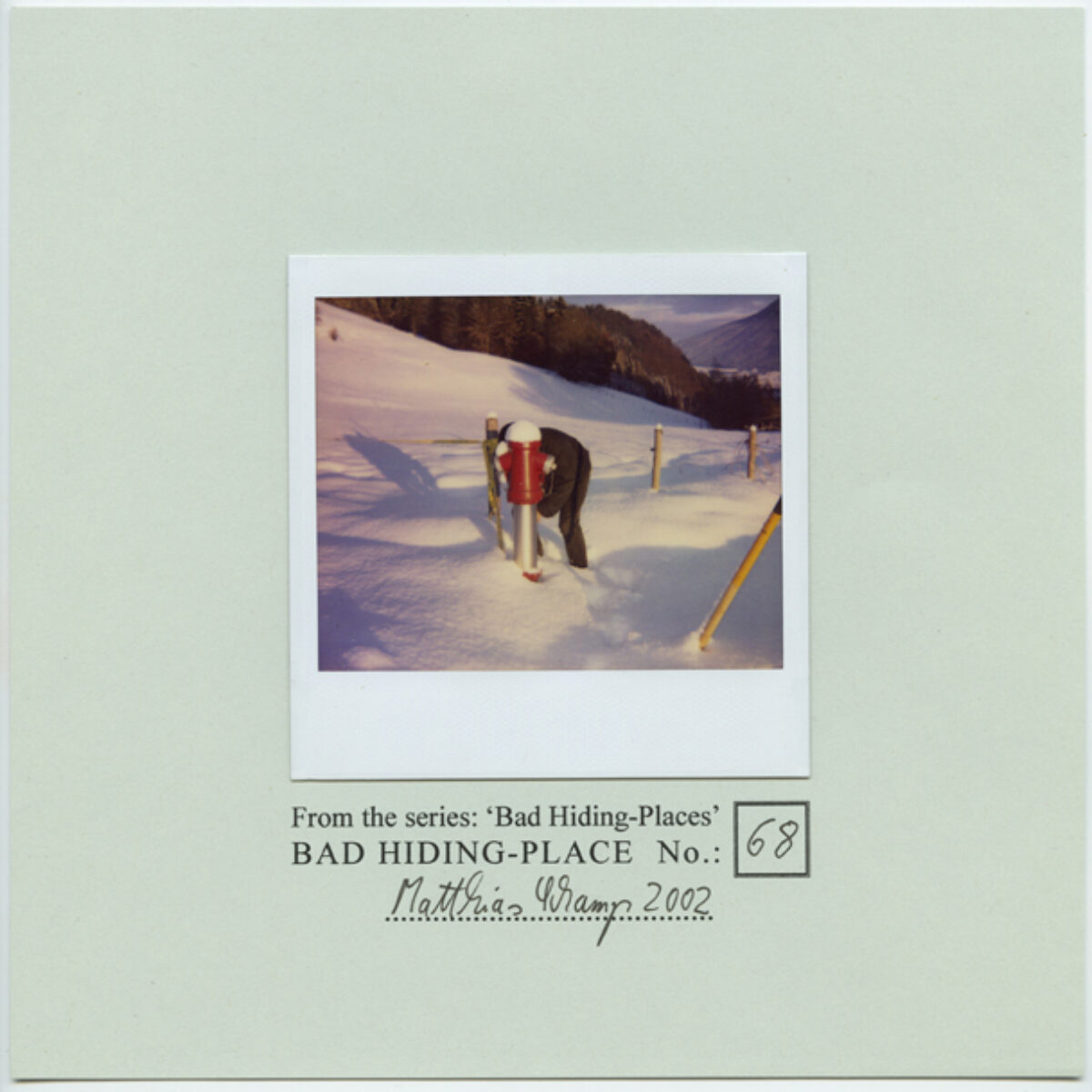Schamps fotografische Serie Schlechte Verstecke, die über mehrere Jahre hinweg in einer deutschen Satirezeitschrift veröffentlicht wurde und in verschiedenen Museen ausgestellt wurde, ist recht bekannt. Die vielen verschiedenen Polaroids, die seit 1998 aufgenommen wurden, zeigen Menschen, die sich an öffentlichen Orten unter Teppichen, hinter Vorhängen oder Straßenschildern verstecken. Diese Orte sind jedoch „schlechte Verstecke“, da die Anwesenheit der Menschen offensichtlich ist. Es gibt eine Wölbung im Teppich, das Straßenschild ist zu schmal, der Vorhang ist durchsichtig. Die Menschen sehen aus, als würden sie sich vor der Kamera verstecken – die diese Entdeckung fotografierend doppelt sichtbar macht. Und da es sich um Polaroids handelt, kann der Fotograf den entdeckten Menschen sofort zeigen, wie vergeblich ihr Versuch war. Die Objekte in den Fotografien werden erst zu Verstecken, wenn wir die Person sehen; andernfalls wären die Polaroids bloße Stillleben oder Landschaften. Der Satz „Wir sehen nur, was wir wissen“ muss hier rückwärts verstanden werden: „Wir wissen nur, was wir sehen.“ Wie er selbst sagt, zielt der Künstler und Autor mit seinen Arbeiten darauf ab, unsere Wahrnehmung zu öffnen: „Indem ich Risse in unsere Wahrnehmung schaffe, wird sie an diesen Stellen geöffnet. Grundsätzlich ist sie dann nicht mehr funktional integriert; an ihrer Stelle entsteht ein Moment der Freiheit, in dem wir plötzlich anfangen können zu denken oder zu erleben.“