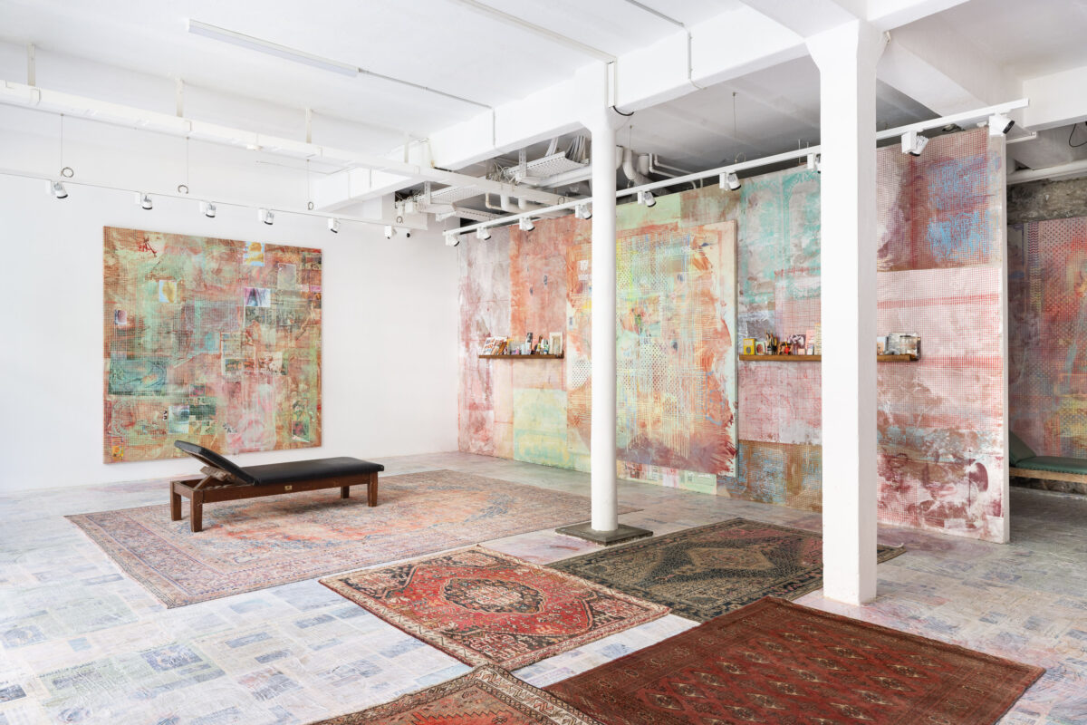 El‑Sayegh works across painting, installation, drawing, performance, sound and video. Her practice centers on the concept of the part–whole relation: she composes artworks from fragmented materials—newsprint, clipping, calligraphy, maps, advertisements—layered and obscured by latex, ink, and collage elements to form evocative grids and quasi-archives. Her “Net‑Grid” canvases, for instance, reflect this approach: familiar imagery is obscured within repeated hand-painted structures that simultaneously reveal and conceal meaning. El-Sayegh uses materials like Financial Times pages—chosen both for their tone and symbolism—to anchor her practice in the body, economics, and language systems.