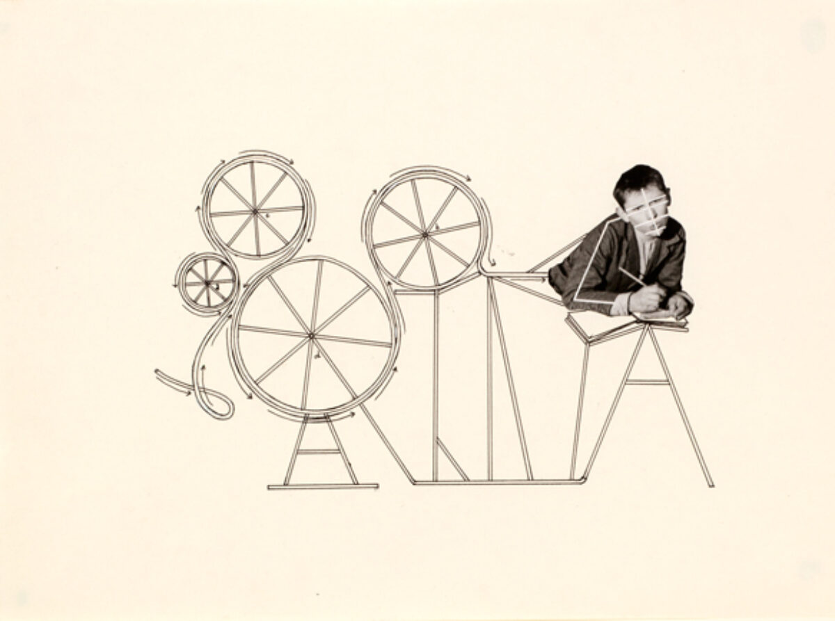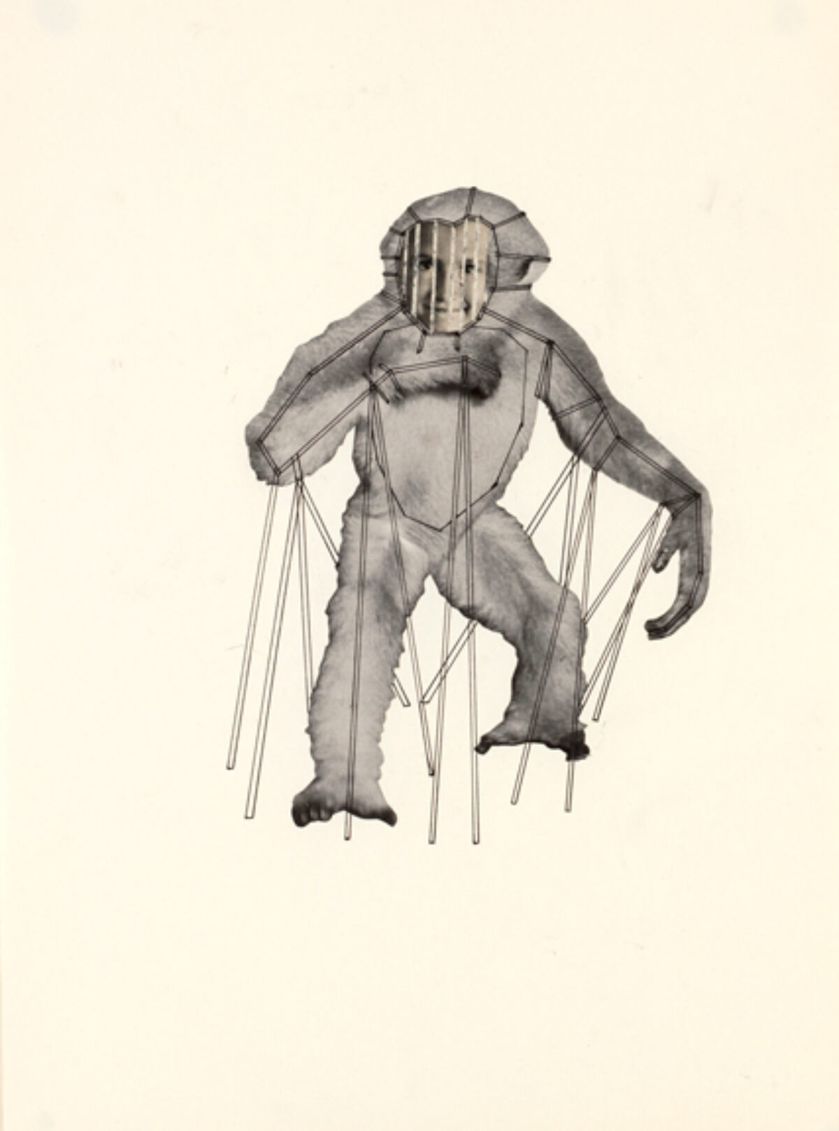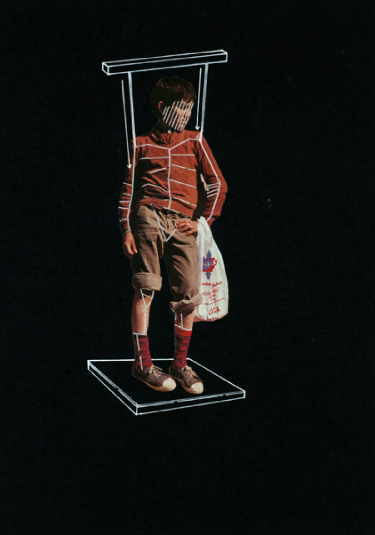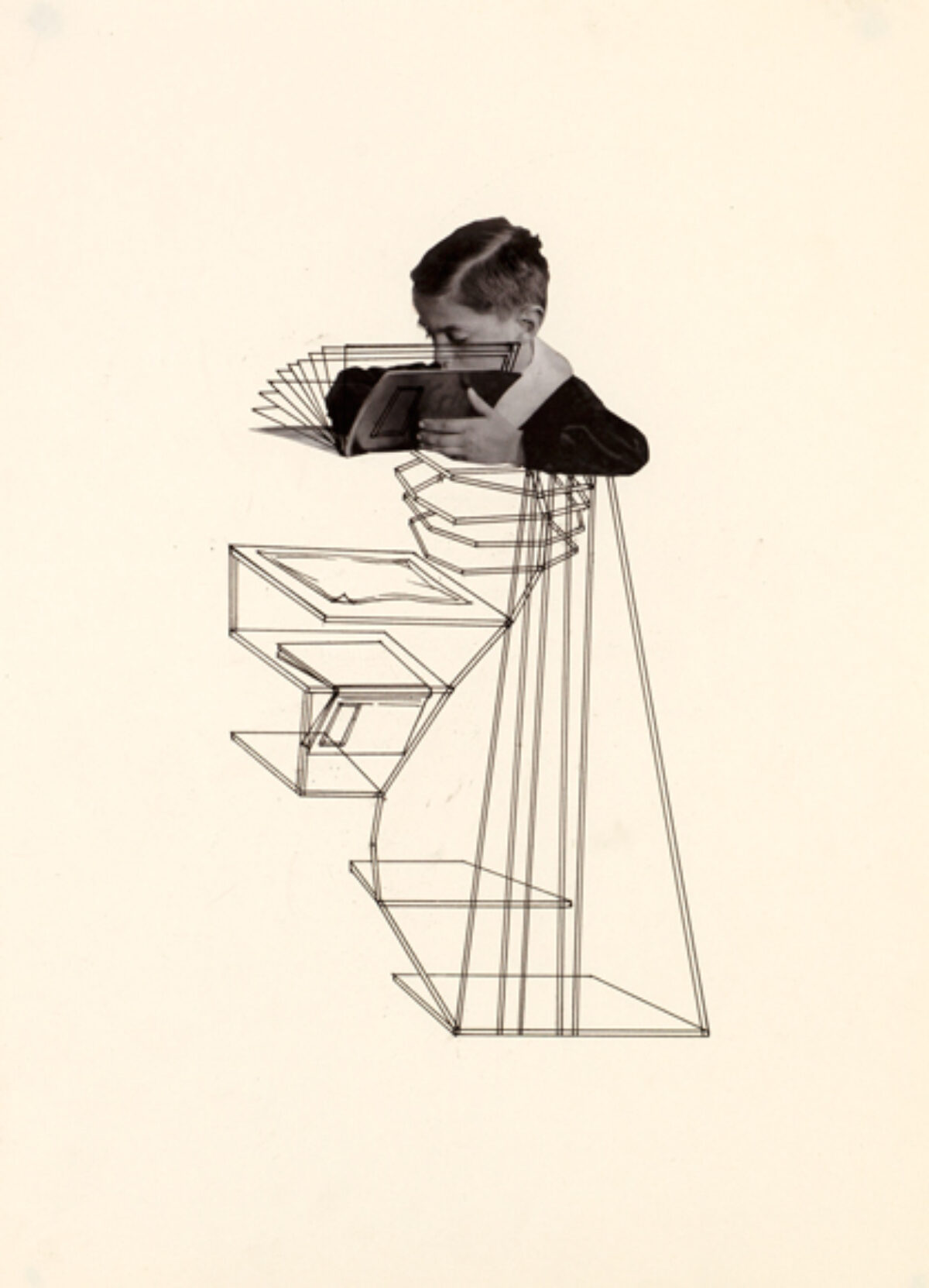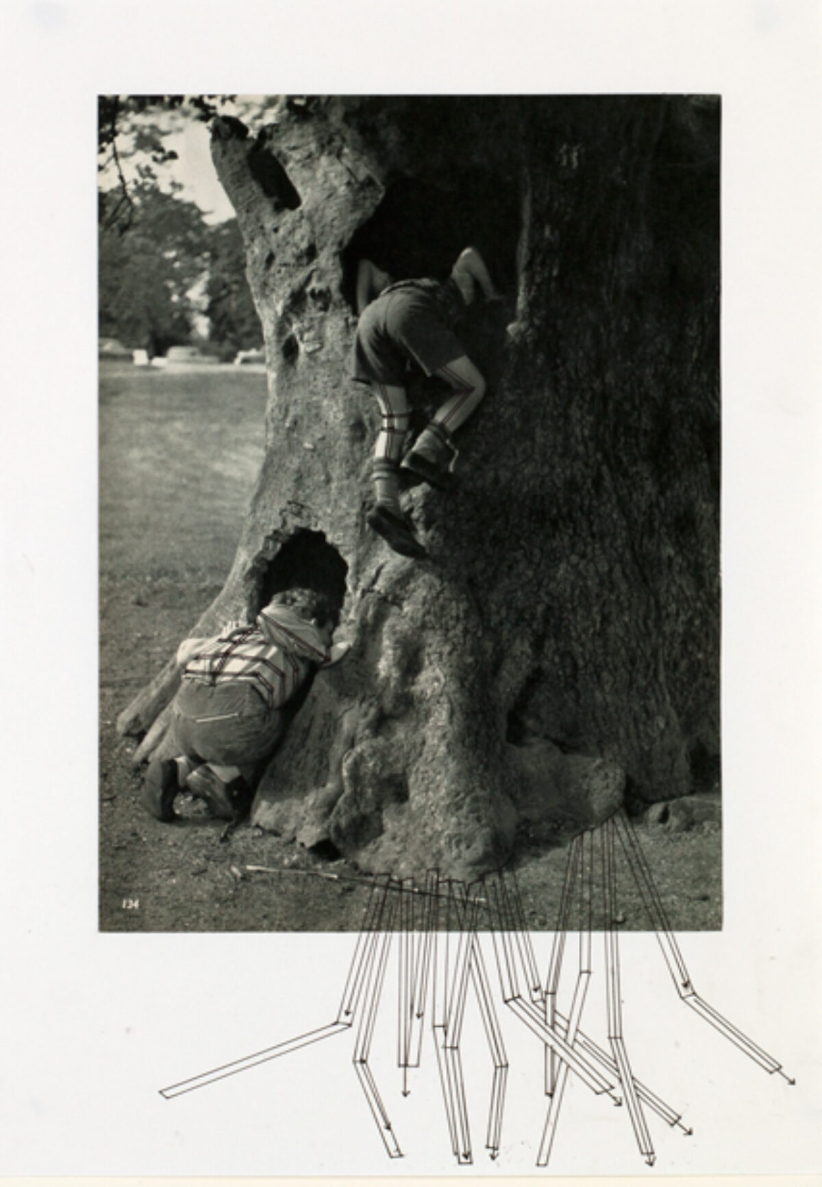 After Koťátková had dealt with the space in her inherited flat, she took up the topic of travelling to school, which for most children is the first independent experience with space outside their home. She made a schoolbag out of wood and took her former route to school accompanied by a camera. Then in front of the school, she buried herself knee deep in dirt. Some of the children who curiously gathered around imitated her. In 2008, the film was a part of an exhibit entitled “The Way to School” at the Prague Špála Gallery, along with drawings reminding us of textbook illustrations and other films with children sitting in wooden structures similar to cages or at a table with their hands behind their back. These films appear horrifying and grotesque at the same time – like all attempts to control and adapt a child’s body to the needs of everyday life. The films portray the lifelong conflict between discipline and the body’s desire for movement, light, air and knowledge, as expressed by a child’s primordial state of being.