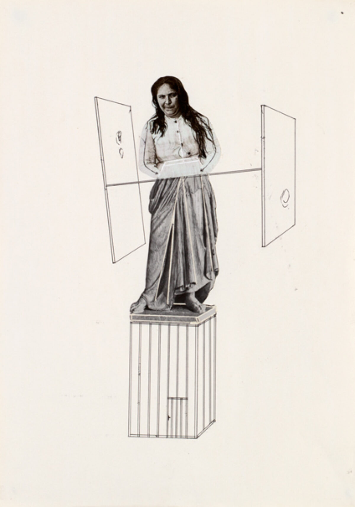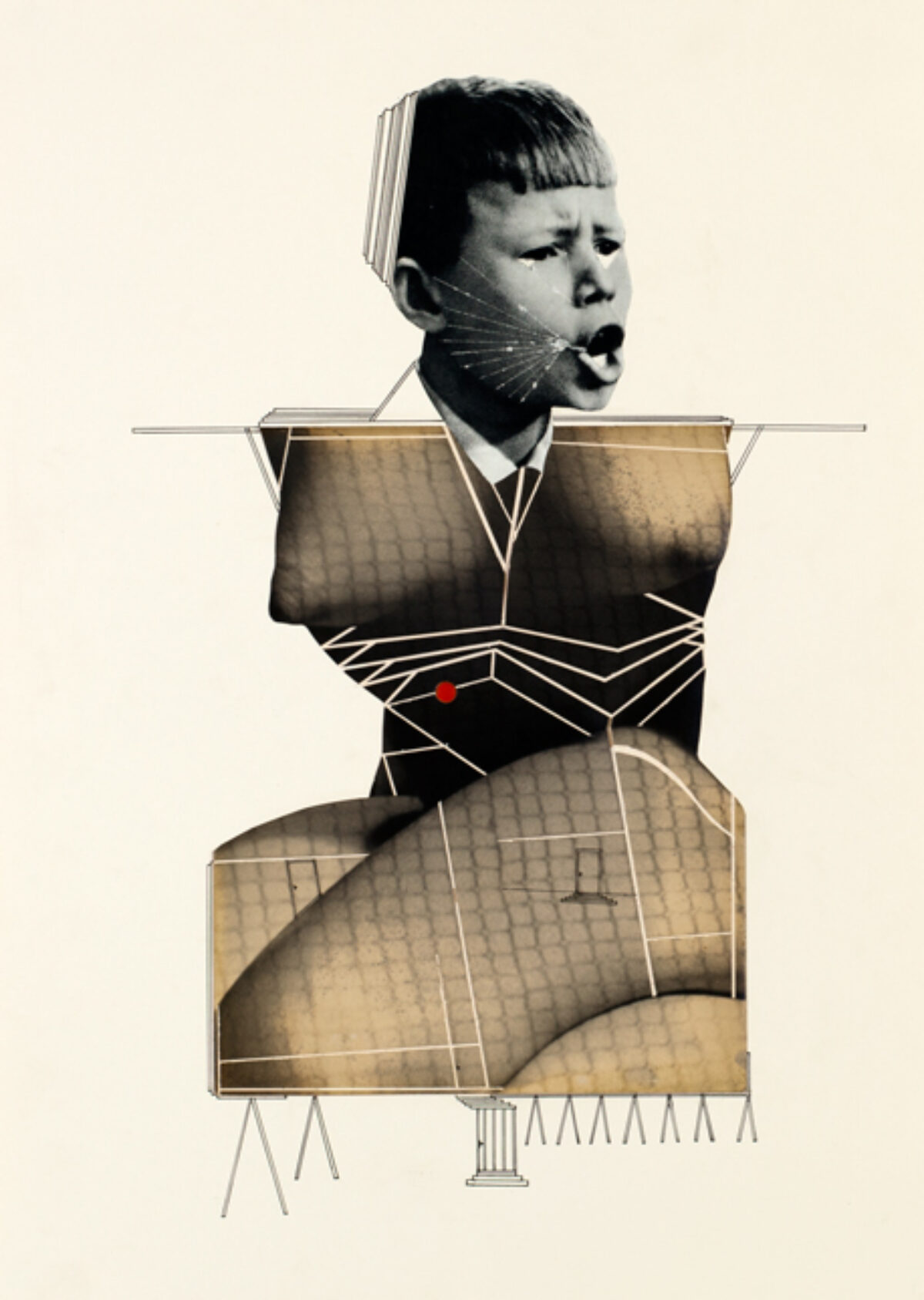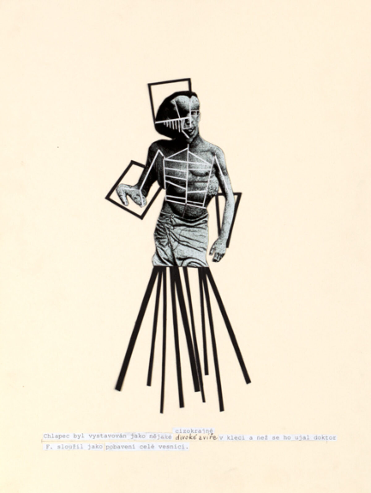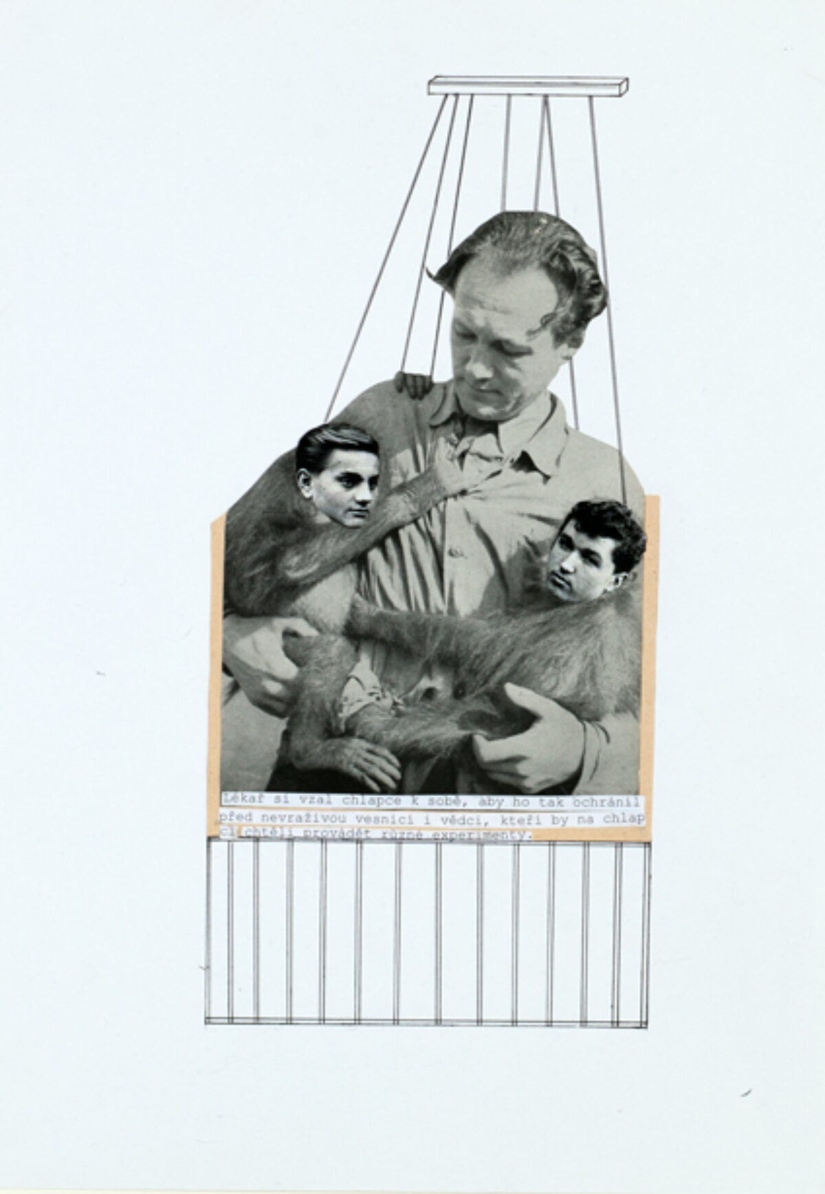 Koťátková focuses on children and school experiments in other projects as well. In 2008, she created a school at the Karlín Studios and invited 24 artists to teach, including Jiří Kovanda and Dominik Lang. However, the threatened body is still her main interest. “House Arrest No. 4” shows a platform made of iron rods for seven open books that can be attached to the body. Similar to medieval torture devices, this book holder is like an image of a quote by Jacques Rancière: “It is a matter of knowing the signs written on my body, the traces that are written by your own past and that are therefore much closer to the truth than any spoken word.” Koťátková makes these often forgotten traces visible again.