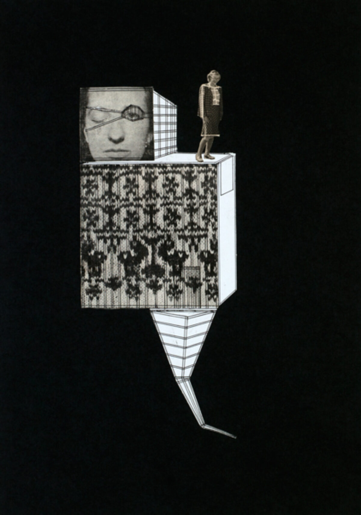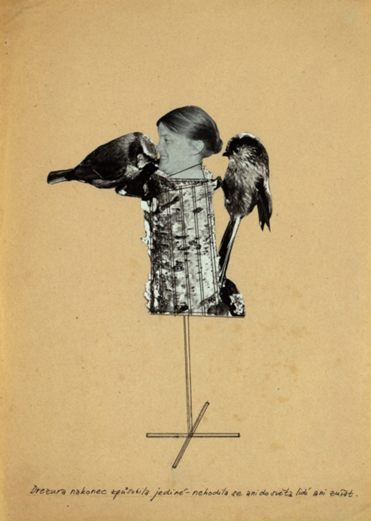 Eva Koťátková struggles with space, childhood, and discipline. The result is pictures, unusual objects, installations, photography, and film. When she inherited a flat full of furniture from her grandmother, she decided to carry out a liberating act: to throw everything away. Then in front of a camera, she boarded herself up with planks in one corner of an empty room, or she imbedded herself in an opening cut out of the raised floor. In this manner, four films were created that demonstrate how constructed space restrains body movement. “There are rules and conventions that constrain us”, Koťátková explains. “That’s what I wanted to show.” In 2007, these films, “Behind between over under in (the room)”, could be viewed at Gallery Jelení in Prague.