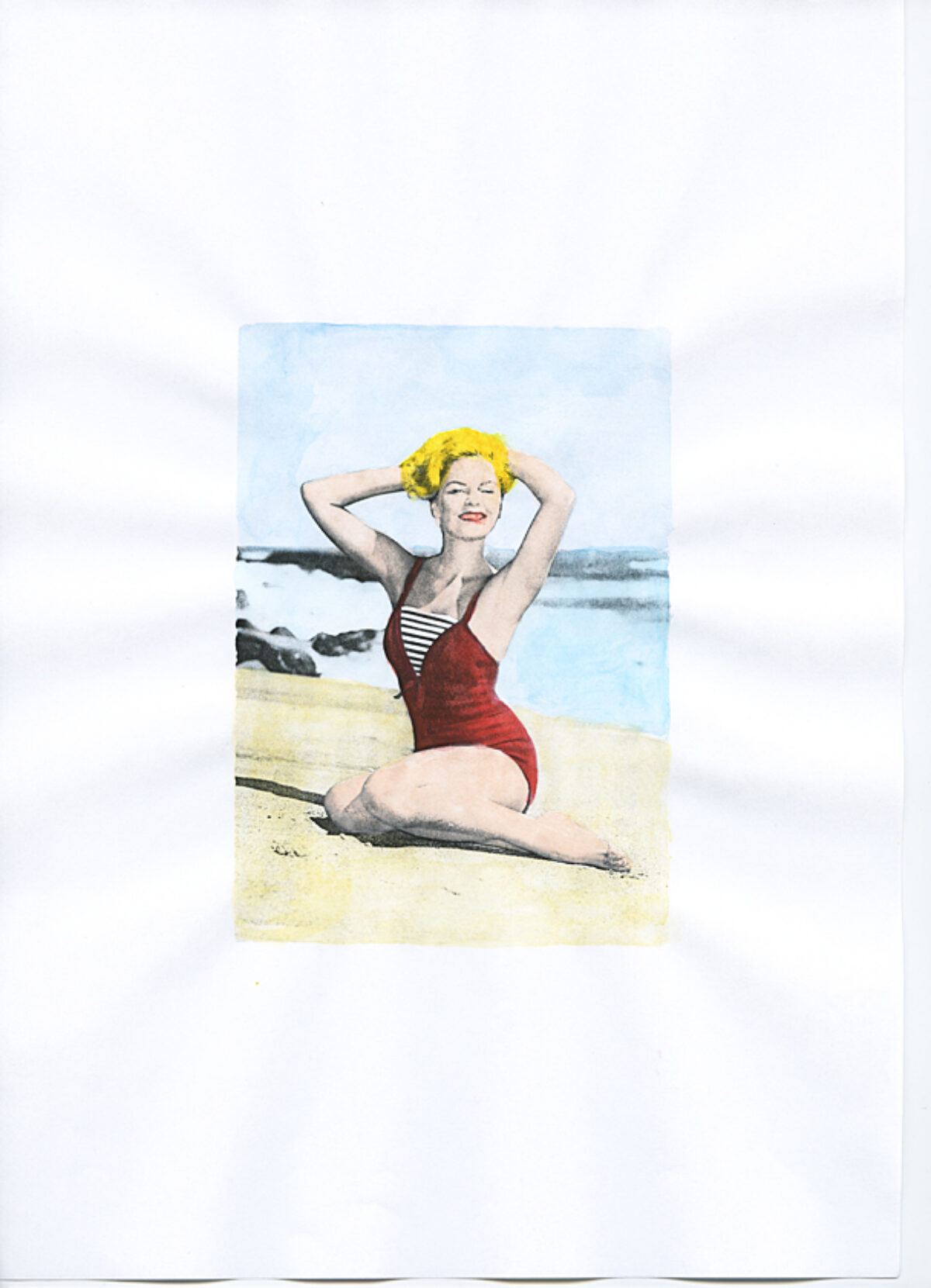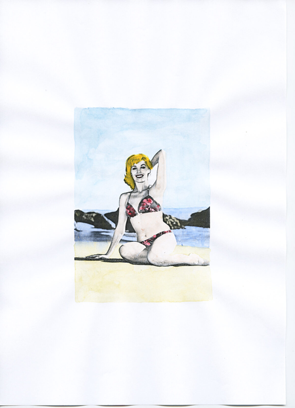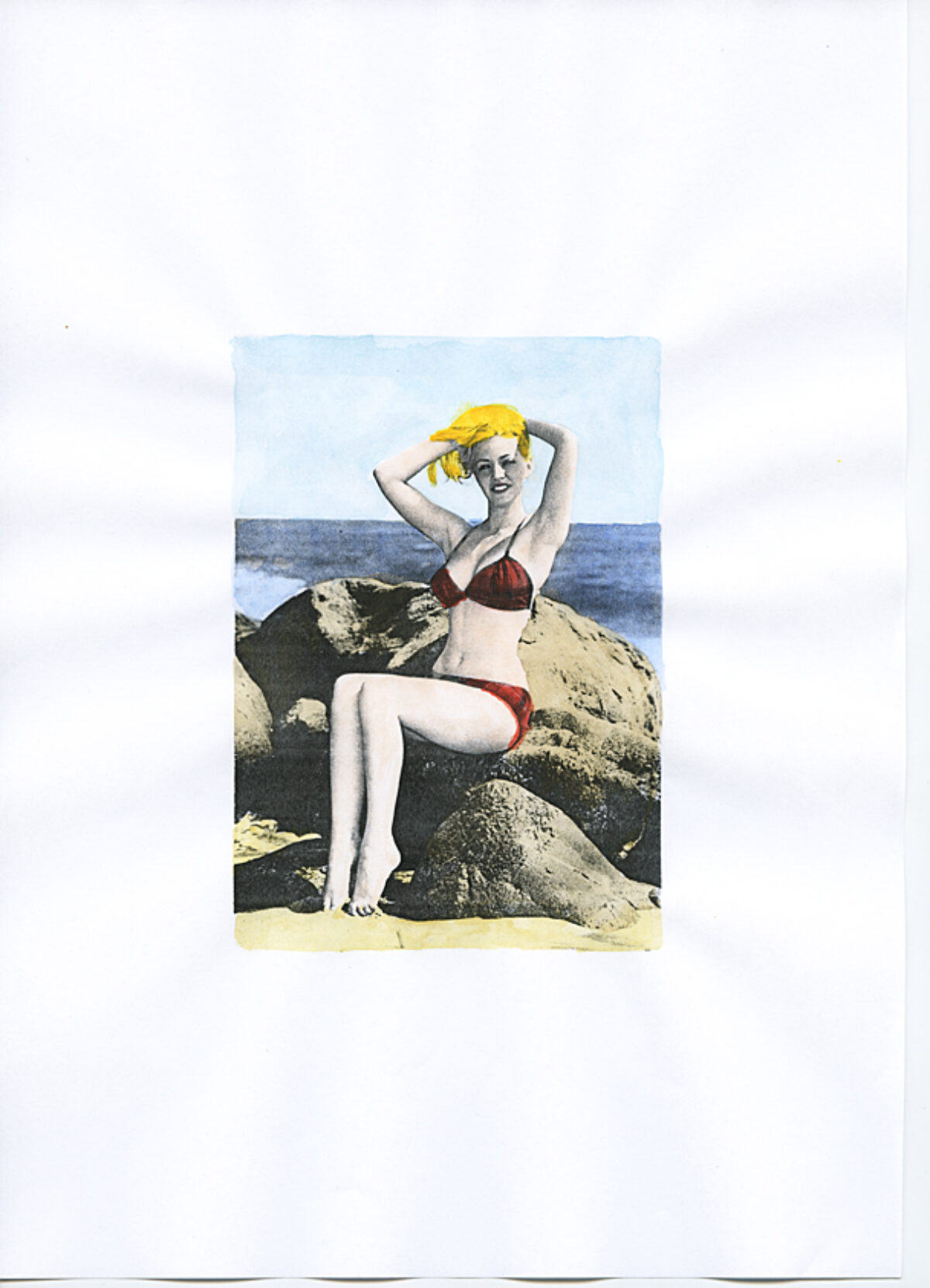 Feldmann spends most of his time browsing newspapers, magazines, books, in flea markets, used book shops, and antiques shops. He seeks images and objects without regard to aesthetic judgment and does not distinguish between mass produced objects, kitsch, waste, or high art. For him, everything is interesting subject matter, not only photographs, but even everyday objects like cake pans. He pieces together hundreds of photographs, drawings, documents, and objects into collages: strawberries and the seductively exposed knees of seated women, as seen by the advertising camera, cake pans from the 1950s, and colourful high-heel shoes. Advertisements, memories, imagination, and reality merge and become the images stored in our minds, and, in this way, become collective.
