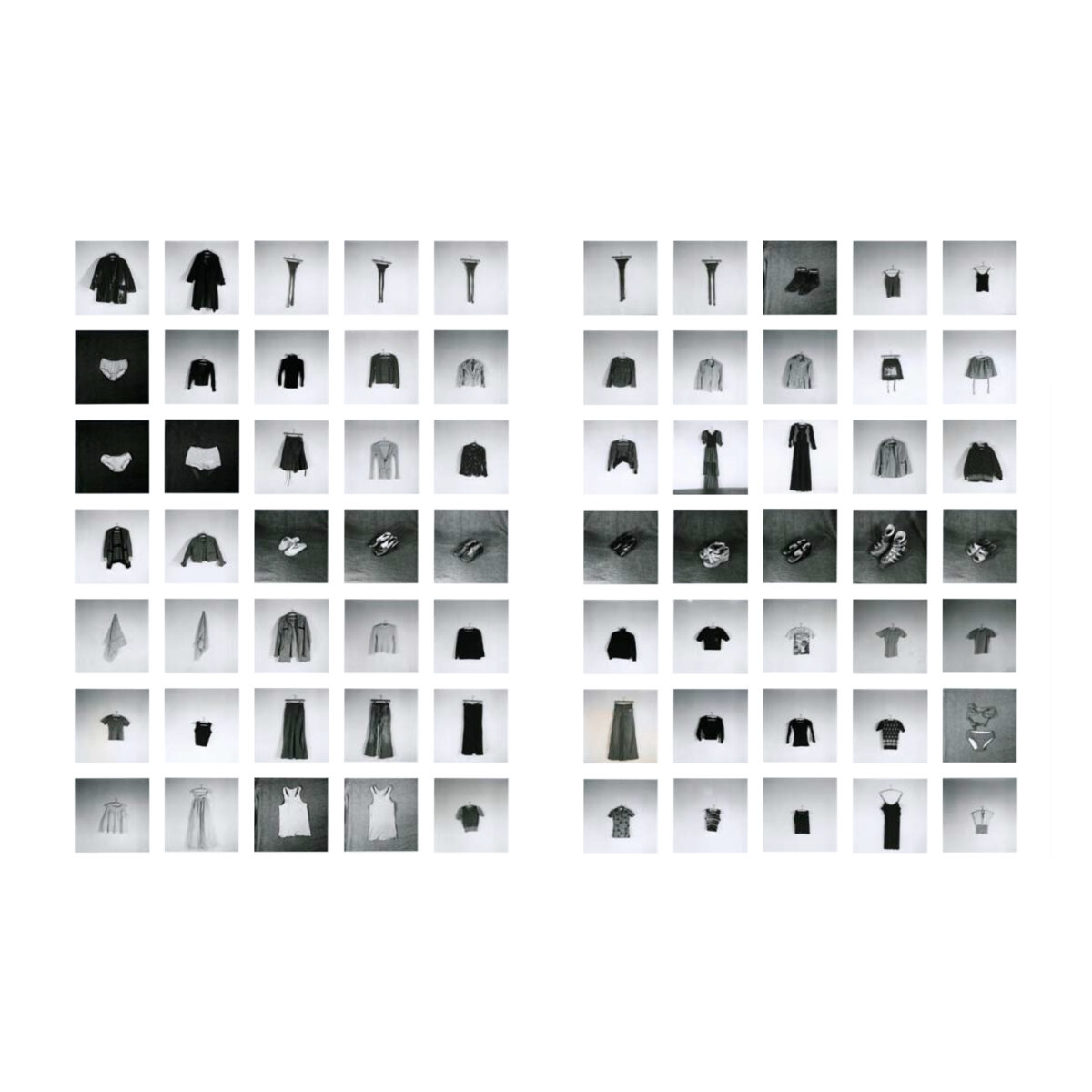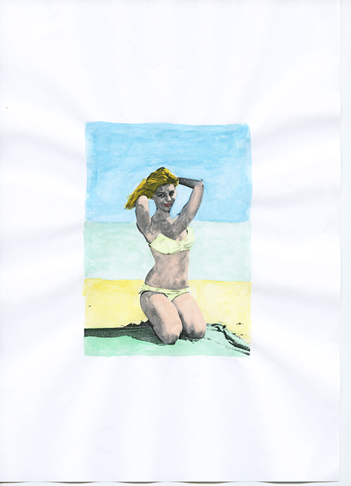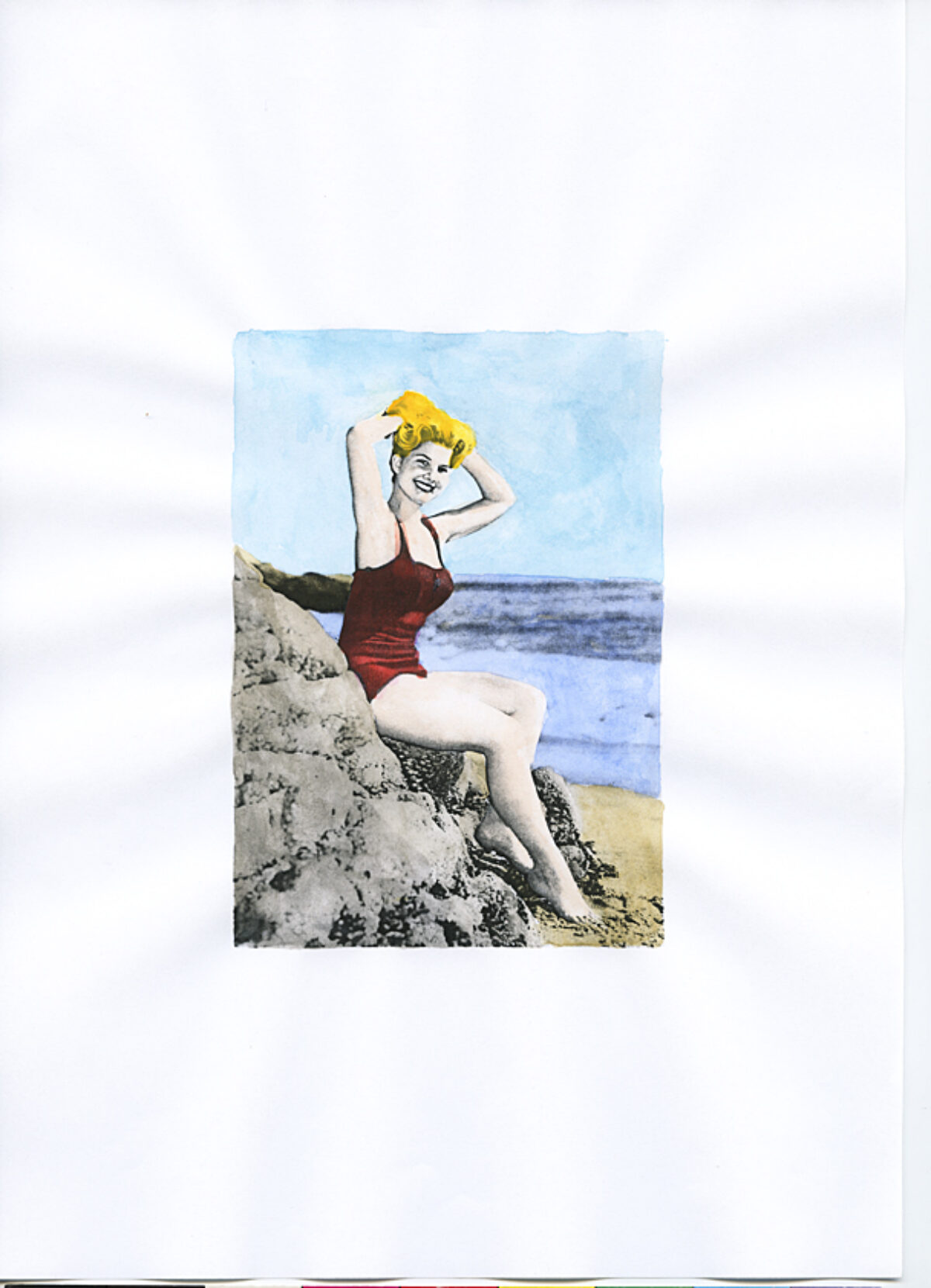 Feldmann spends most of his time browsing newspapers, magazines, books, in flea markets, used book shops, and antiques shops. He seeks images and objects without regard to aesthetic judgment and does not distinguish between mass produced objects, kitsch, waste, or high art. For him, everything is interesting subject matter, not only photographs, but even everyday objects like cake pans. He pieces together hundreds of photographs, drawings, documents, and objects into collages: strawberries and the seductively exposed knees of seated women, as seen by the advertising camera, cake pans from the 1950s, and colourful high-heel shoes. Advertisements, memories, imagination, and reality merge and become the images stored in our minds, and, in this way, become collective.