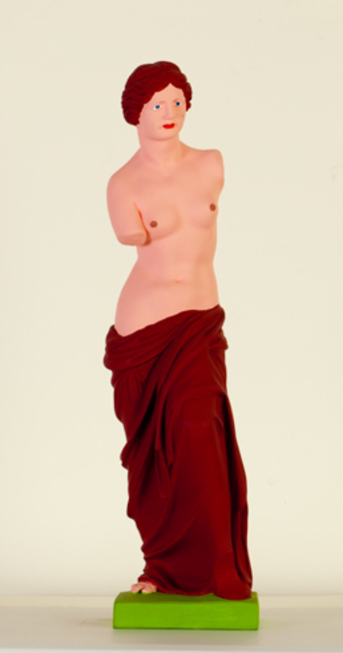 Only rarely does Feldmann take a photograph himself, for example, when he photographs the view from a hotel room where he spent the night. Which image was written into our memory: the original or the one captured by the camera? Feldmann’s series of 72 black-and-white photographs, “All the Clothes of a Woman” (1974) is legendary. Each photograph shows one article of women’s clothing, such as a skirt, a bra, or stockings. His series of 101 portraits from 2001, documenting the 100 years of human life starting with a new-born baby, is unforgettable. Exceptionally, Feldmann even takes up the brush. When he does, he paints pin-ups or a large-scale copy of Michelangelo’s “David” in yellow and exposes this embodiment of high art to the hustle and bustle of everyday city life.