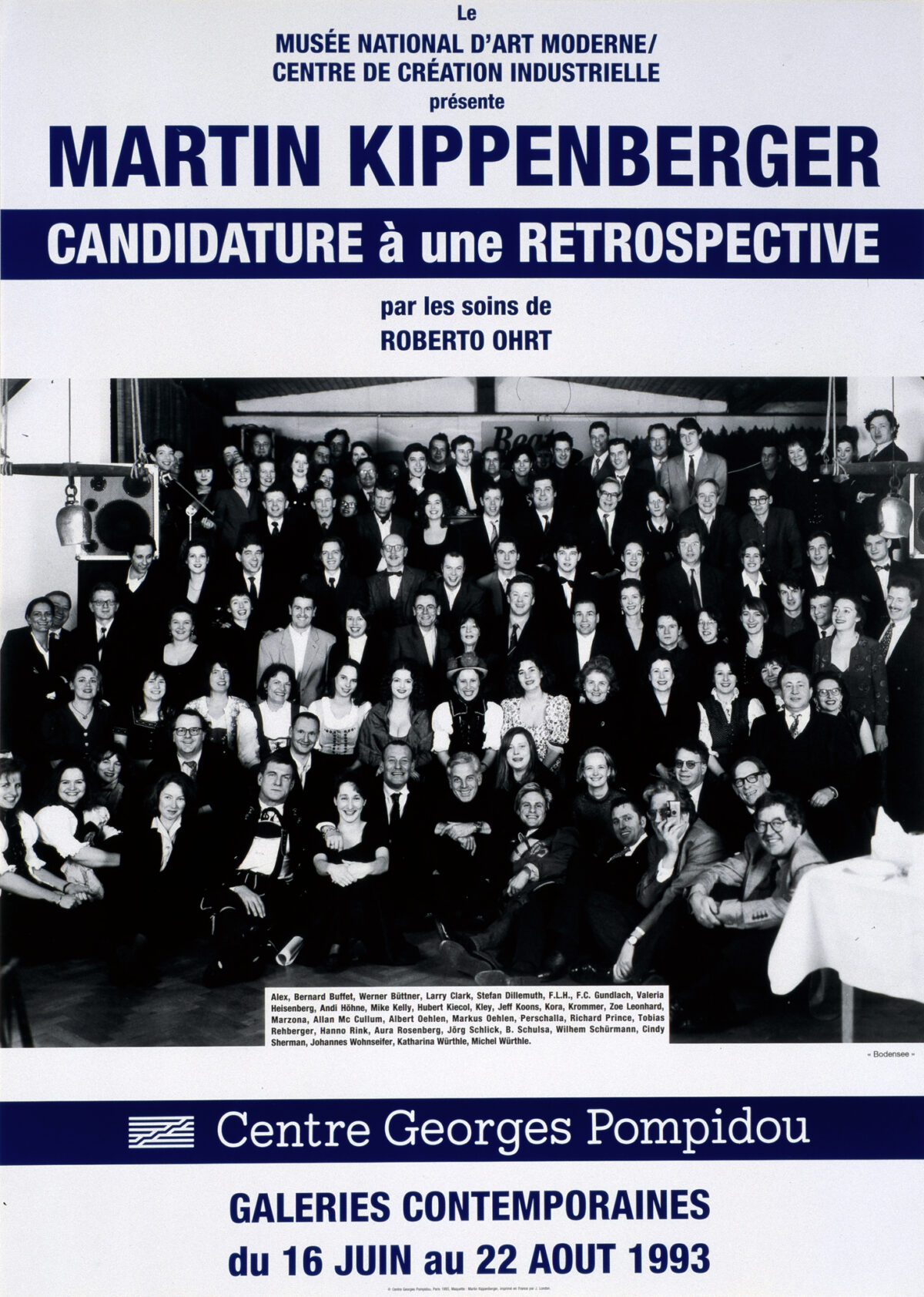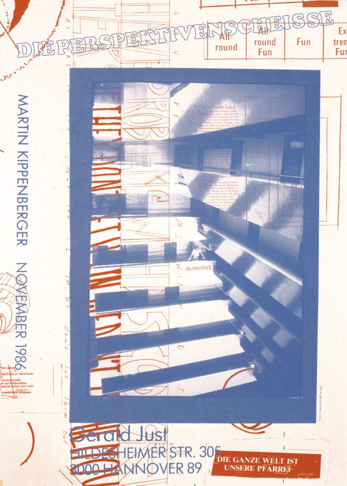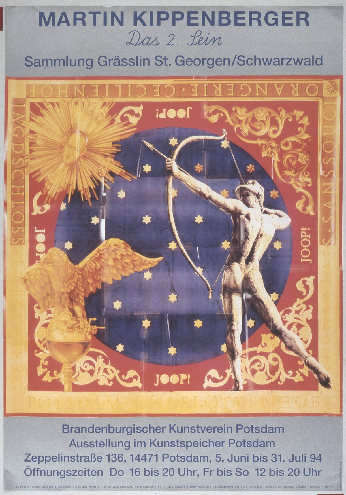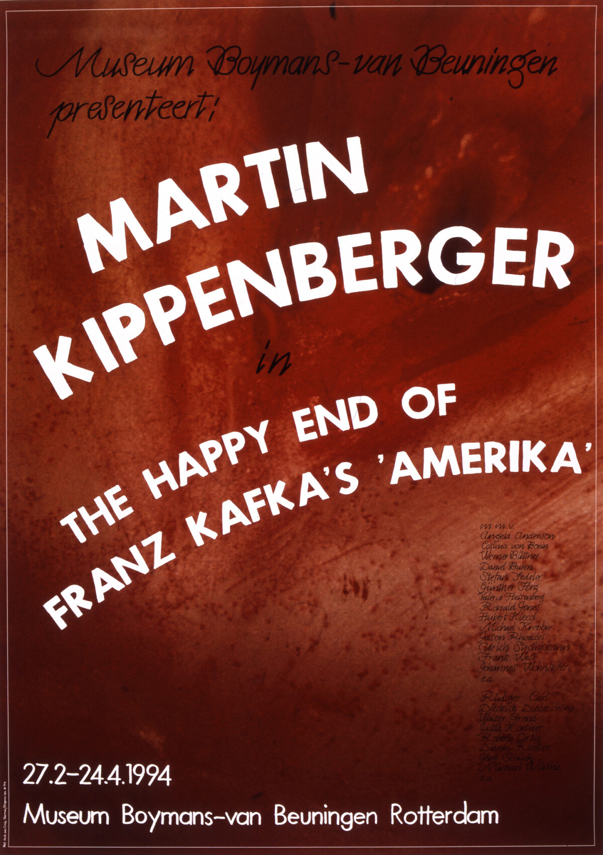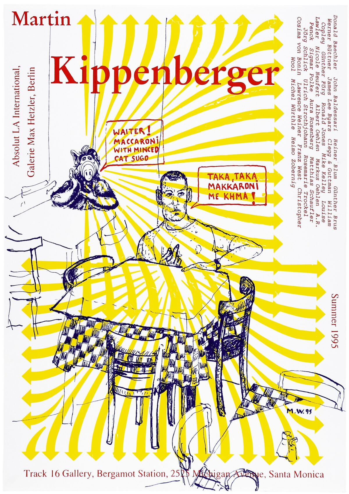 Influenced by these experiences, Kippenberger was more than capable of balancing between intellectually intense thinking and staged absurdity, aggression, disgust, and awkwardness. Some of the titles include “Heute denken – Morgen fertig” (Think today – tomorrow ready) or “Durch Pubertät zum Erfolg” (From puberty to success), appearing on these posters which he thought were just as important as his pictures and installations. Kippenberger would have also undoubtedly agreed to exchange his posters with the Tichý ocean foundation, as permitted by the co-founder of “Büro Kippenberger” and manager of the artist’s endowment, Gisela Capitain.