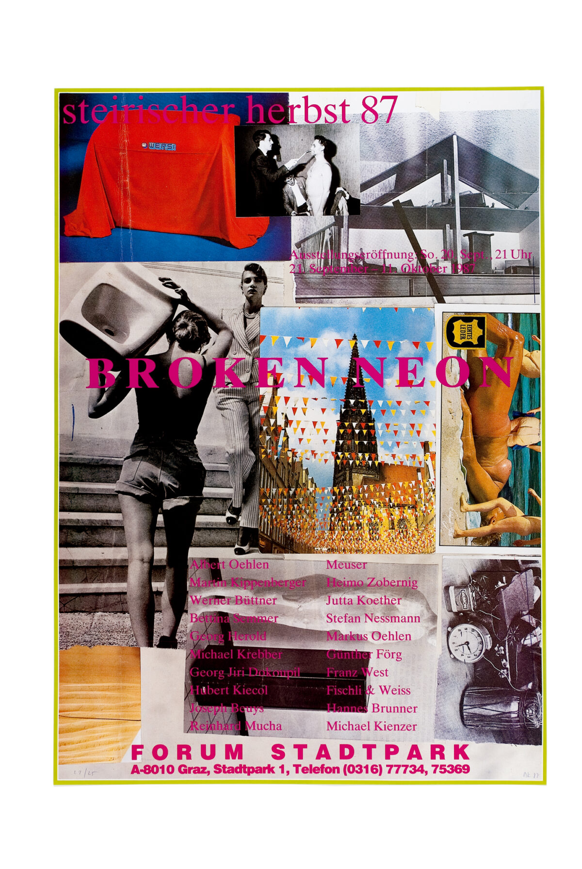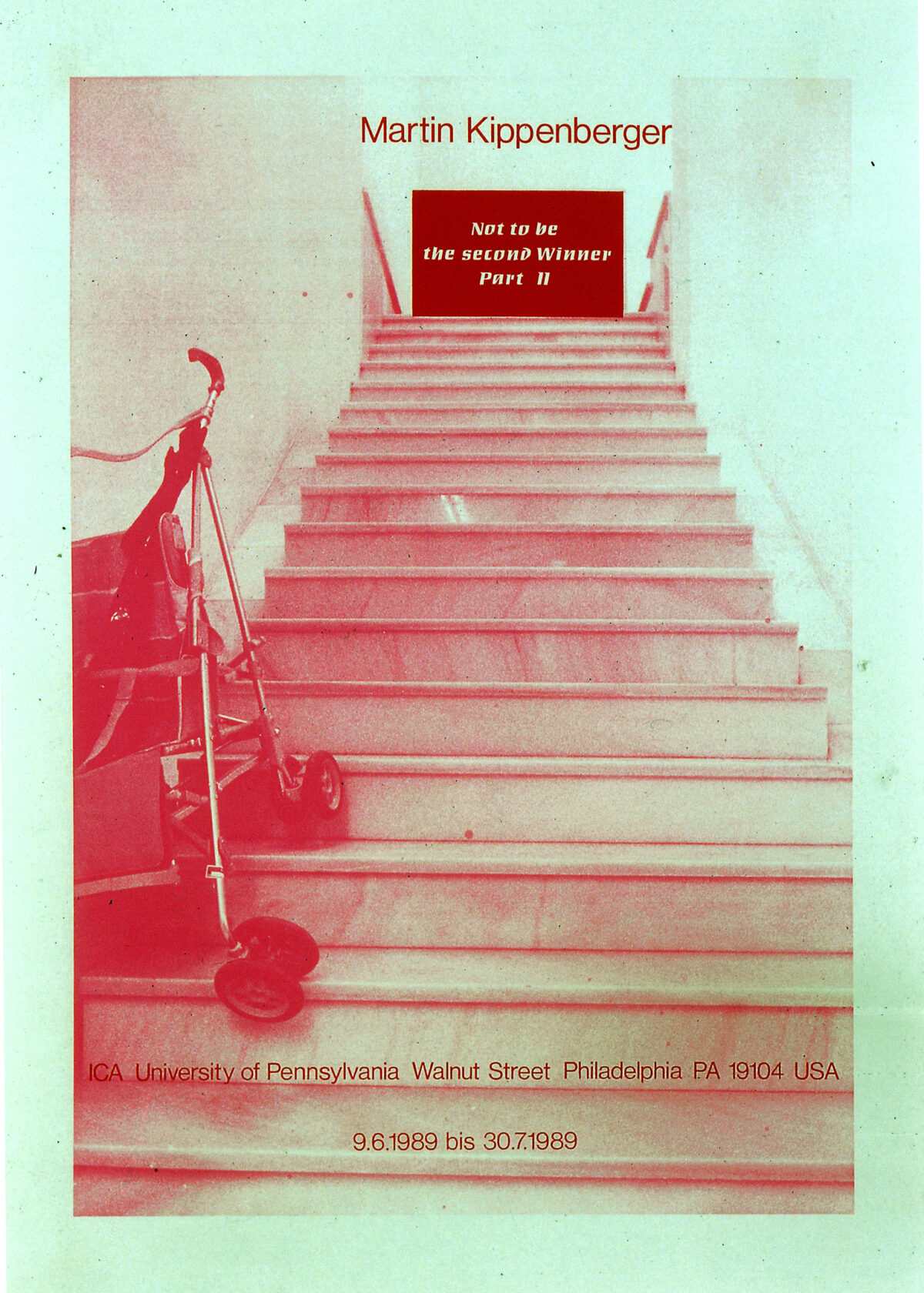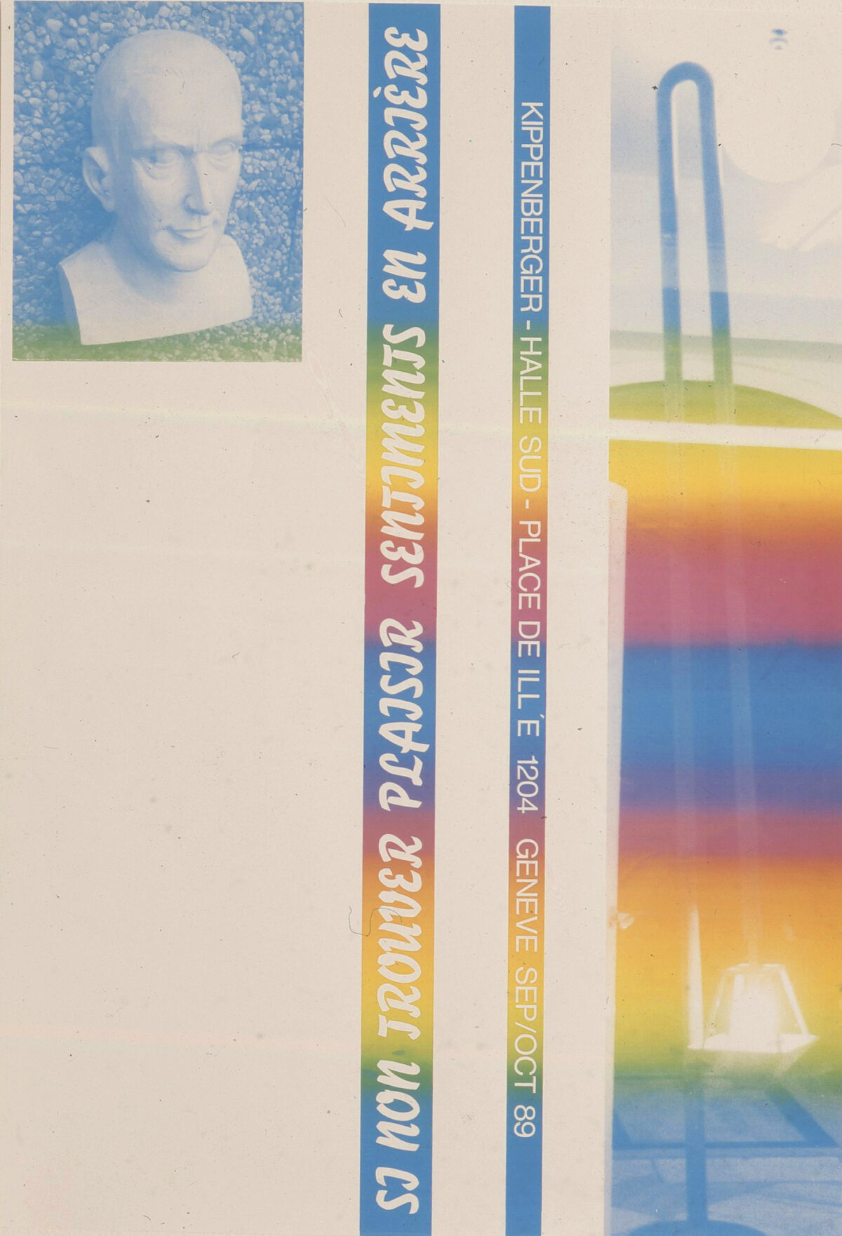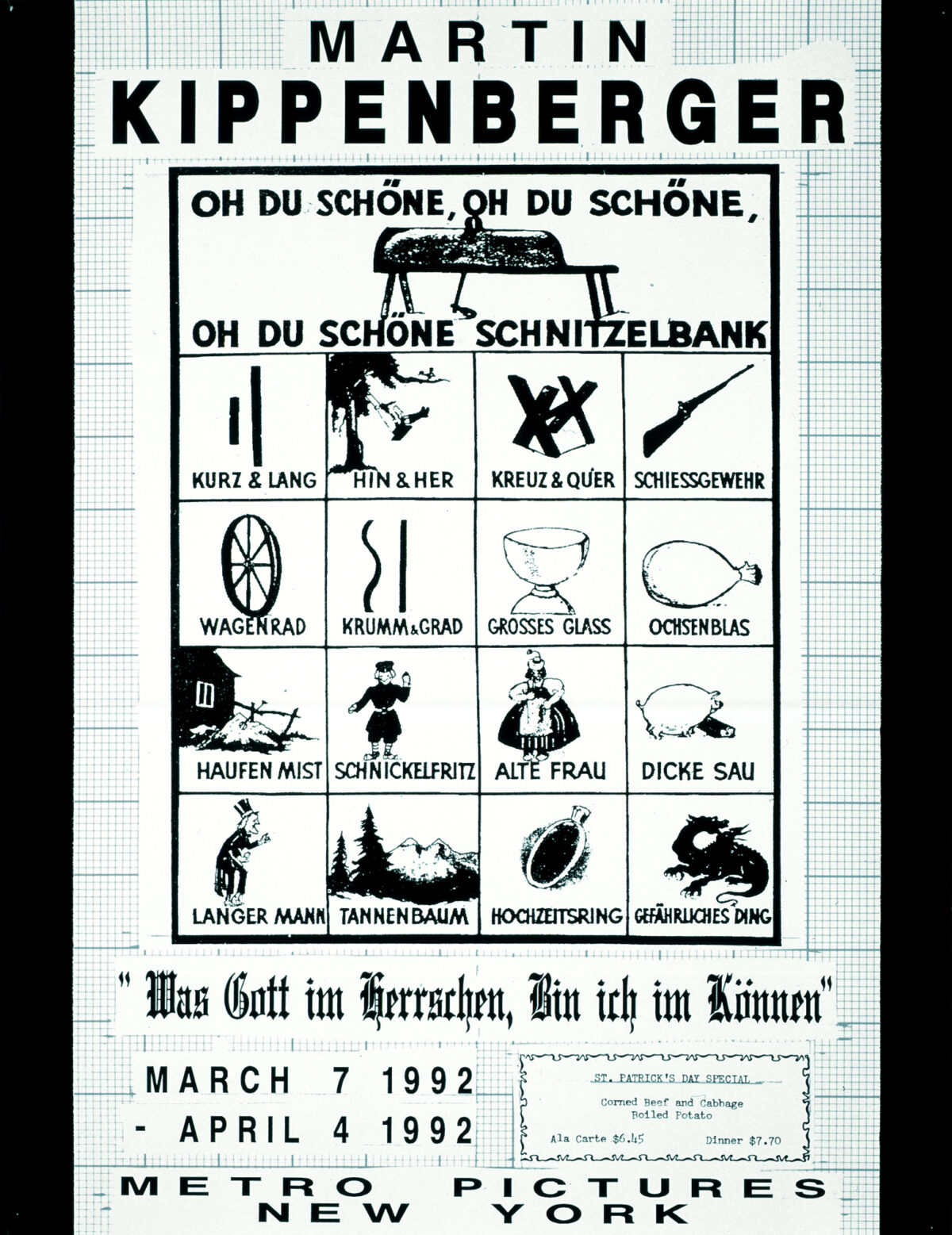 Influenced by these experiences, Kippenberger was more than capable of balancing between intellectually intense thinking and staged absurdity, aggression, disgust, and awkwardness. Some of the titles include “Heute denken – Morgen fertig” (Think today – tomorrow ready) or “Durch Pubertät zum Erfolg” (From puberty to success), appearing on these posters which he thought were just as important as his pictures and installations. Kippenberger would have also undoubtedly agreed to exchange his posters with the Tichý ocean foundation, as permitted by the co-founder of “Büro Kippenberger” and manager of the artist’s endowment, Gisela Capitain.