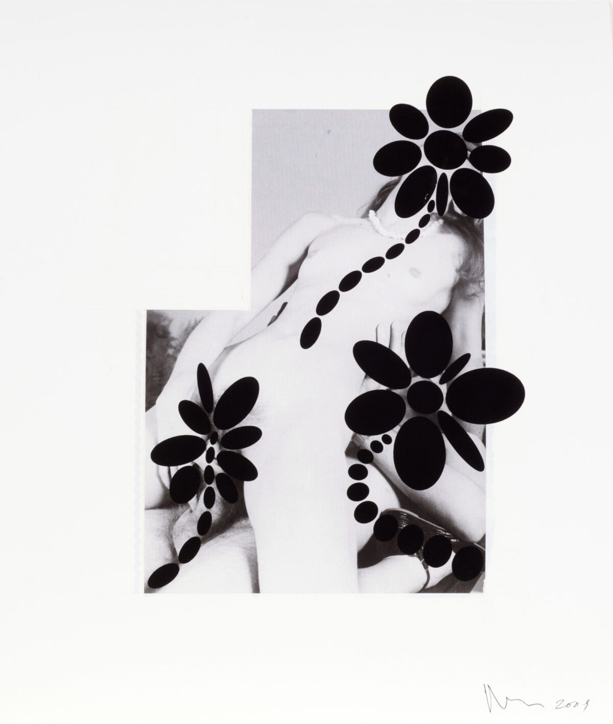There are pens, watches, and living rooms in these photographs, banal subject matter, the faces of attractive women, but no celebrities as in the snapshots of Andy Warhol. Prince became famous in the 1980s for his “Cowboys”, which showed heroic-looking men from the American “Wild West” holding lassoes and riding horses, taken from the ubiquitous Marlboro cigarette advertisements. For “Girlfriends”, another well-known series, Prince was inspired by biker magazines and their almost ritual motif of linking motorcycles, the object of desire, with sexy women. He uses amateur snapshots for the background of these “rephotographed” photographs which were sent to these magazines for publication. The beloved motorcycle is paired with the beloved girlfriend, who seems to be almost unaware of her own eroticism. Scantily clad, she poses in front of the freshly waxed motorcycle, sits on it, or sometimes even lies across it. She seems to be both intimate and totally innocent.