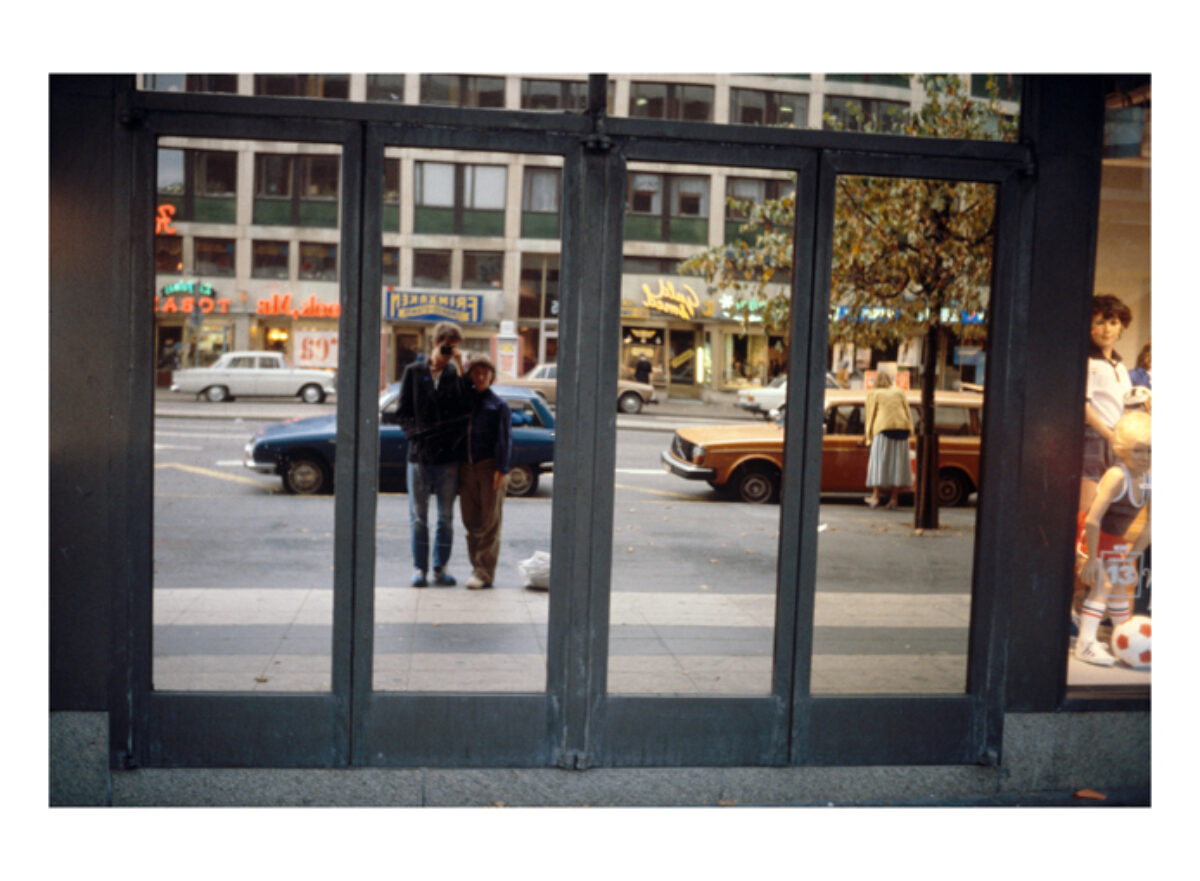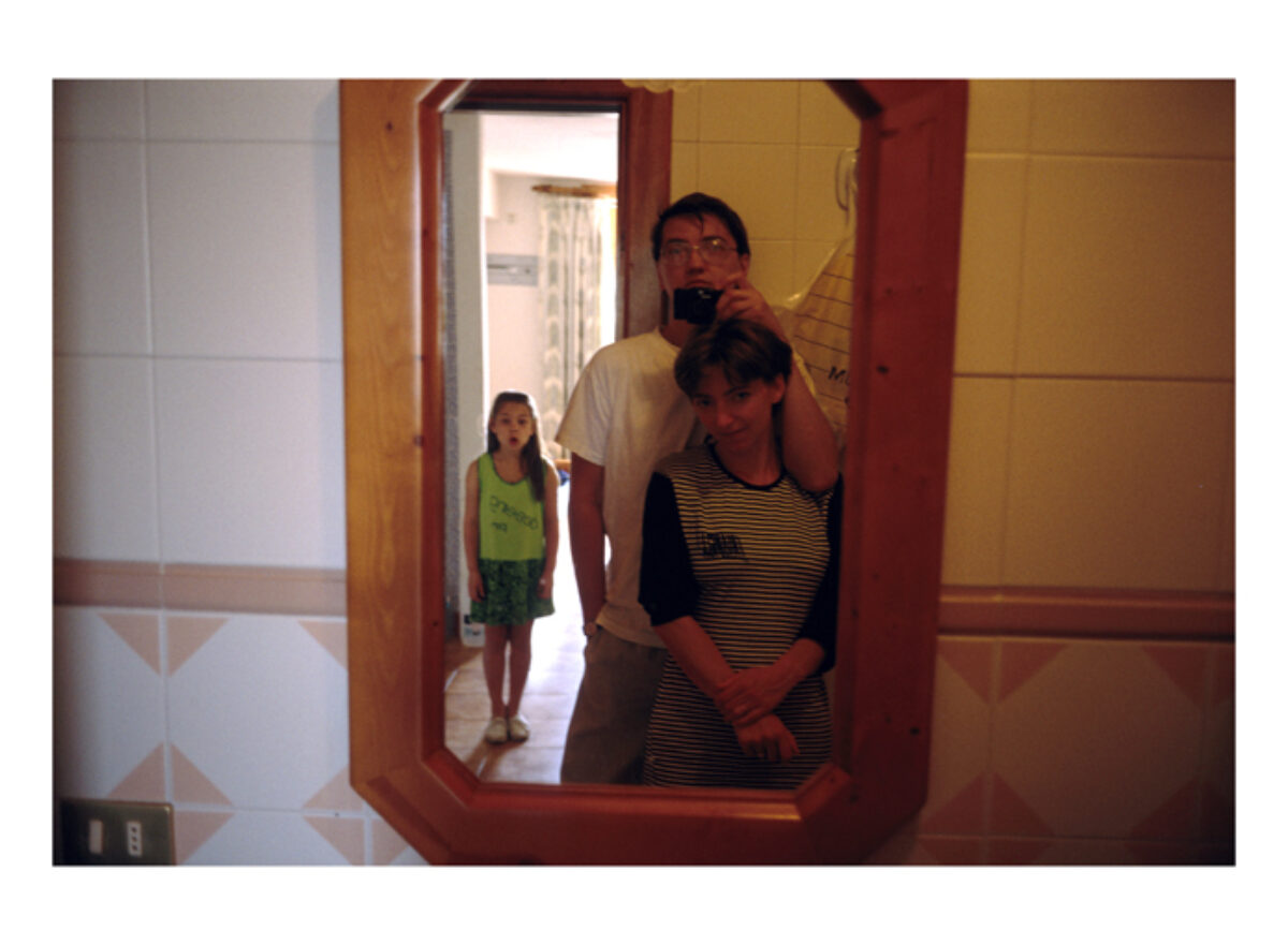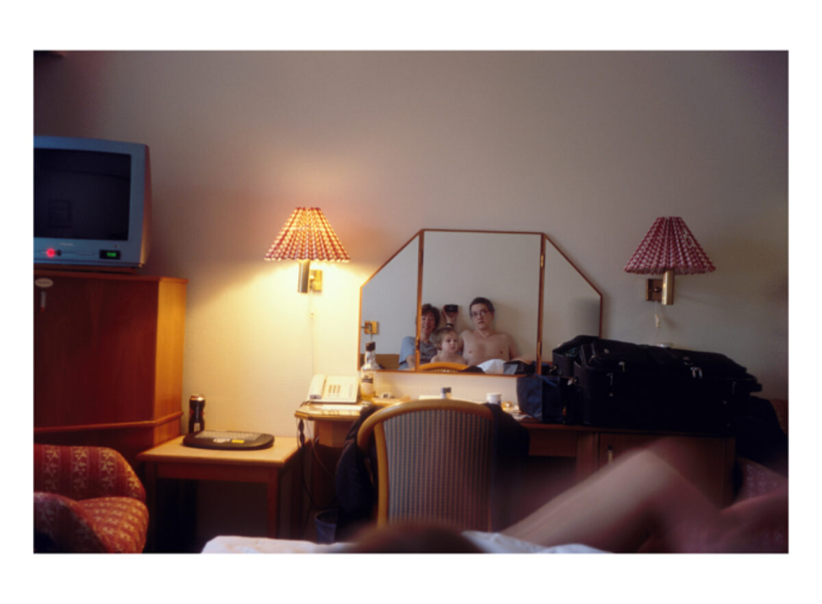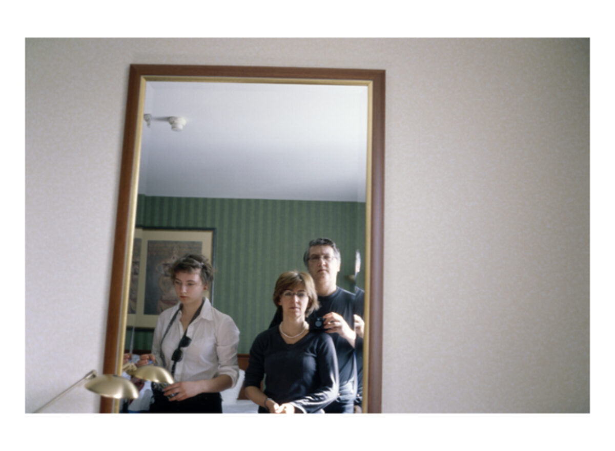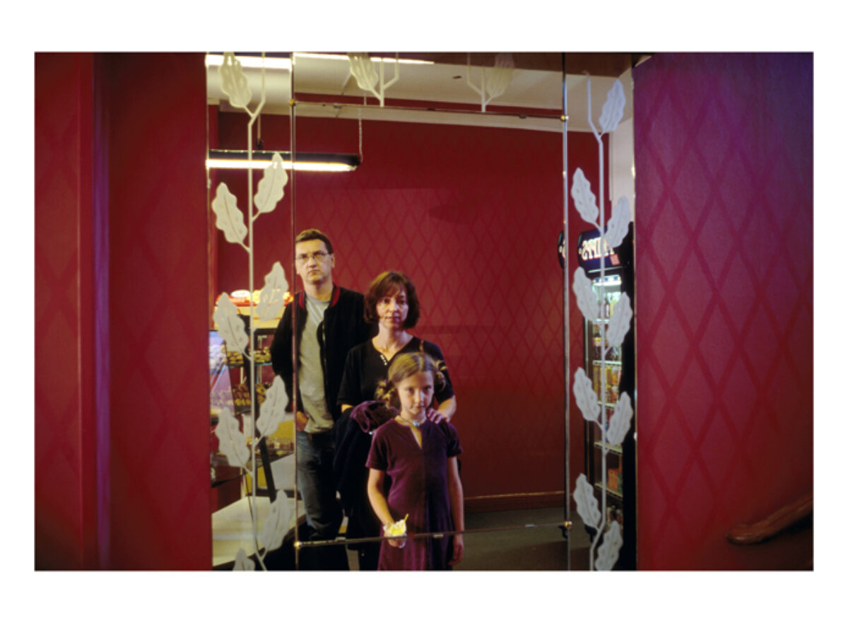 “The name of photography’s noeme will therefore be: ‘That-has-been’ … what I see has been here, in this place.” (Roland Barthes) Paris, 1979. A young couple photographs itself in a mirror at the Hotel Bohème. A short time later, they learn that the woman is pregnant. This photographic moment becomes an initiatory moment of life and art. Until 2013, Peter Lundström will repeatedly photograph his growing family on reflective surfaces located in public or semi-public spaces: on streets and squares, in trains or hotels. He creates low-angle and high-angle shots, photographs of shop window and images of funhouse mirrors—the kind existing since the 1920s. During that time of the photographic avant-garde, the artist Werner Gräff called on people to “no longer be afraid of reflections in photographs. Are there not enough examples in which reflections offer a special charm?” Gazing into the reflective surface, Lundström and his wife, the artist Anna Kristensen, look out of the picture at the viewer. The dividing and connecting line between the couple finds its correspondence between the couple and us, the recipient. Through the transparent border of the photograph, the viewer looks into a mirror that reflects not his gaze, but that of a stranger. A Lacanian horizon is thus opened for the people in the picture and for those outside it. The couple’s dual gaze onto itself strengthens the awareness of togetherness. With the encounter and differentiation of one’s own gaze with that of a stranger, commonalities and differences become clear to the viewer as well. Not only do the photographs allow us to follow the couple on their travels to various countries, but they also take us on a journey through time. The motionless faces grow older; the daughters grow taller. Roland Barthes described the photograph as “an image which produces death while trying to preserve life.” In his nearly 30-year series, Lundström exponentially reveals this aspect of photography. By “keeping his eyes focused firmly” on life, he inexorably evokes the fleeting nature of the moment and the end of all being.