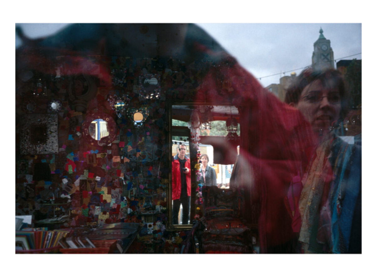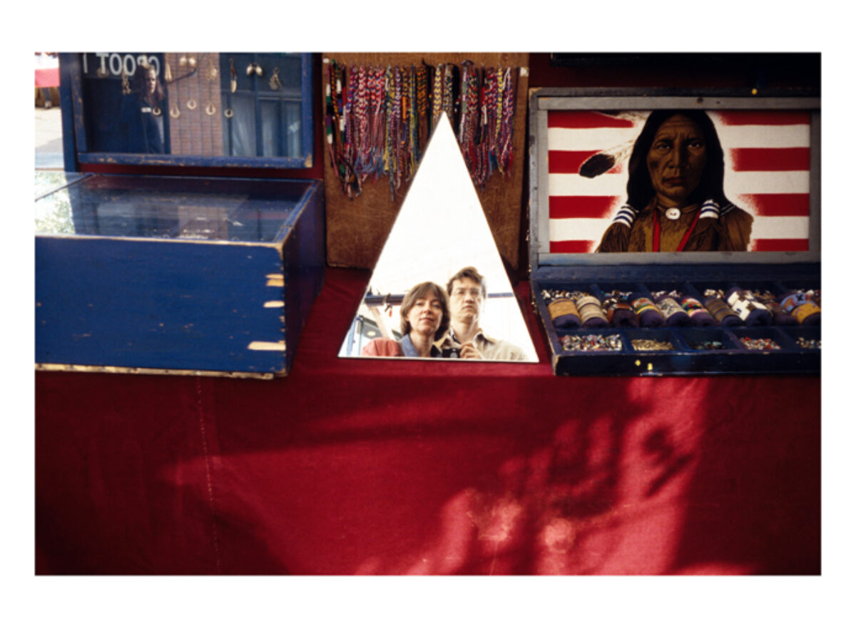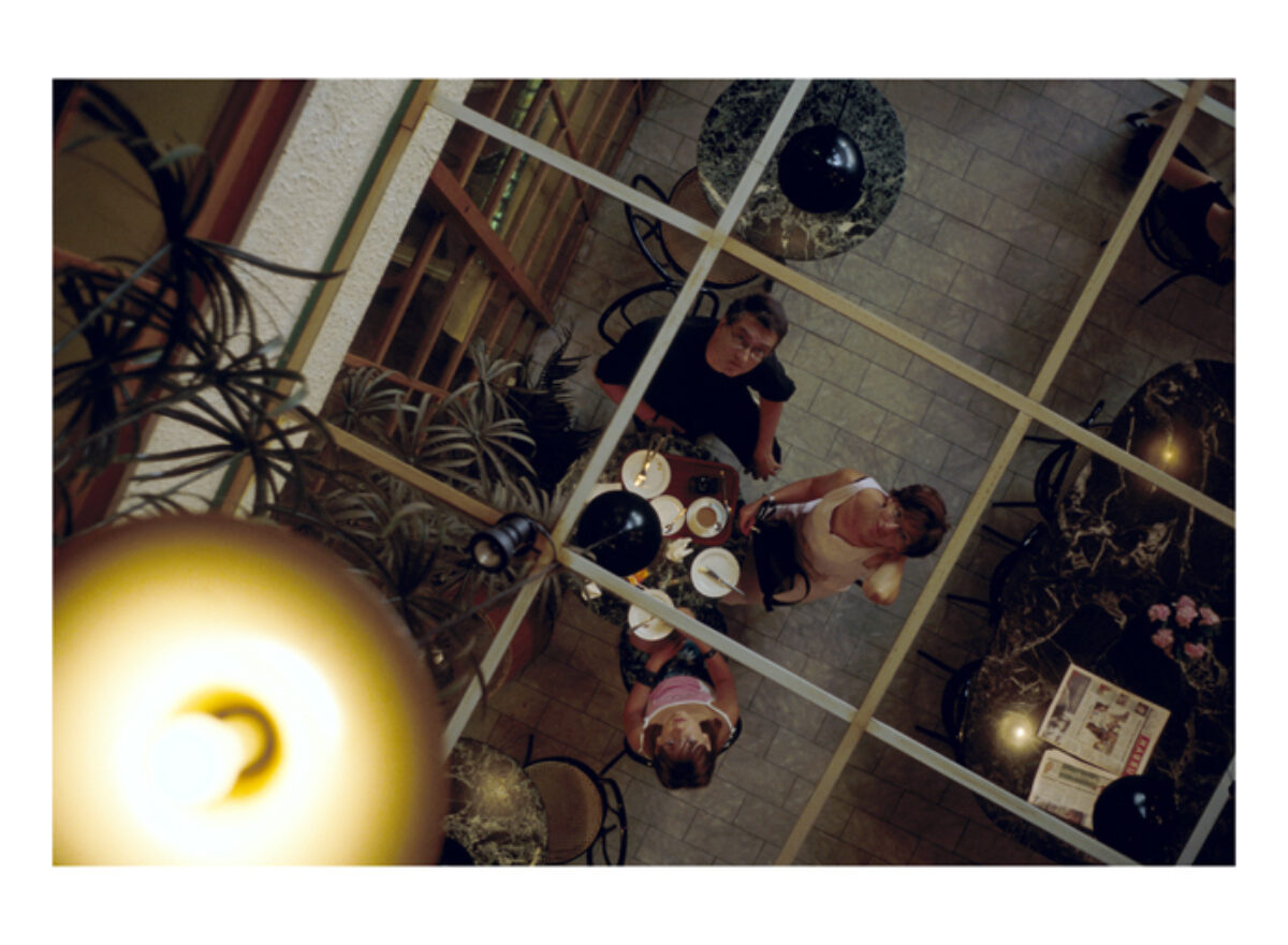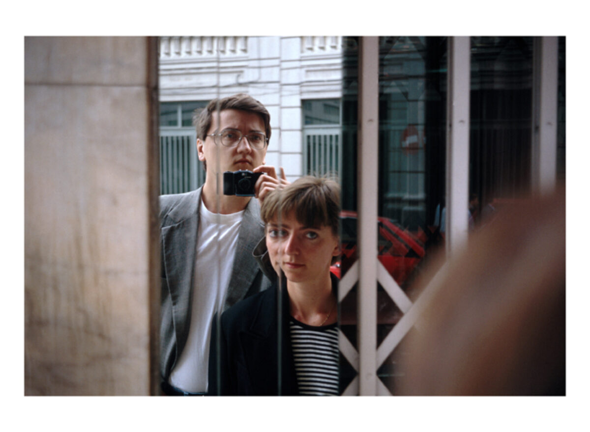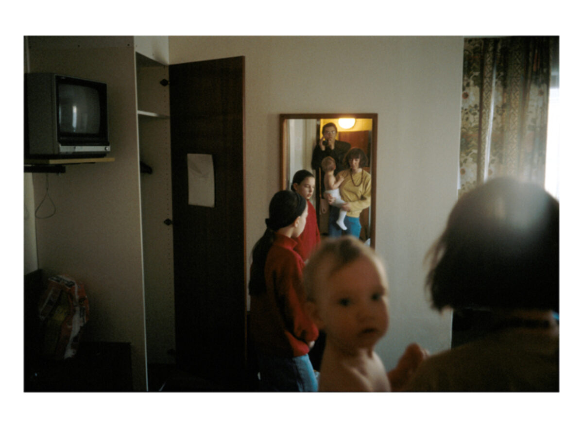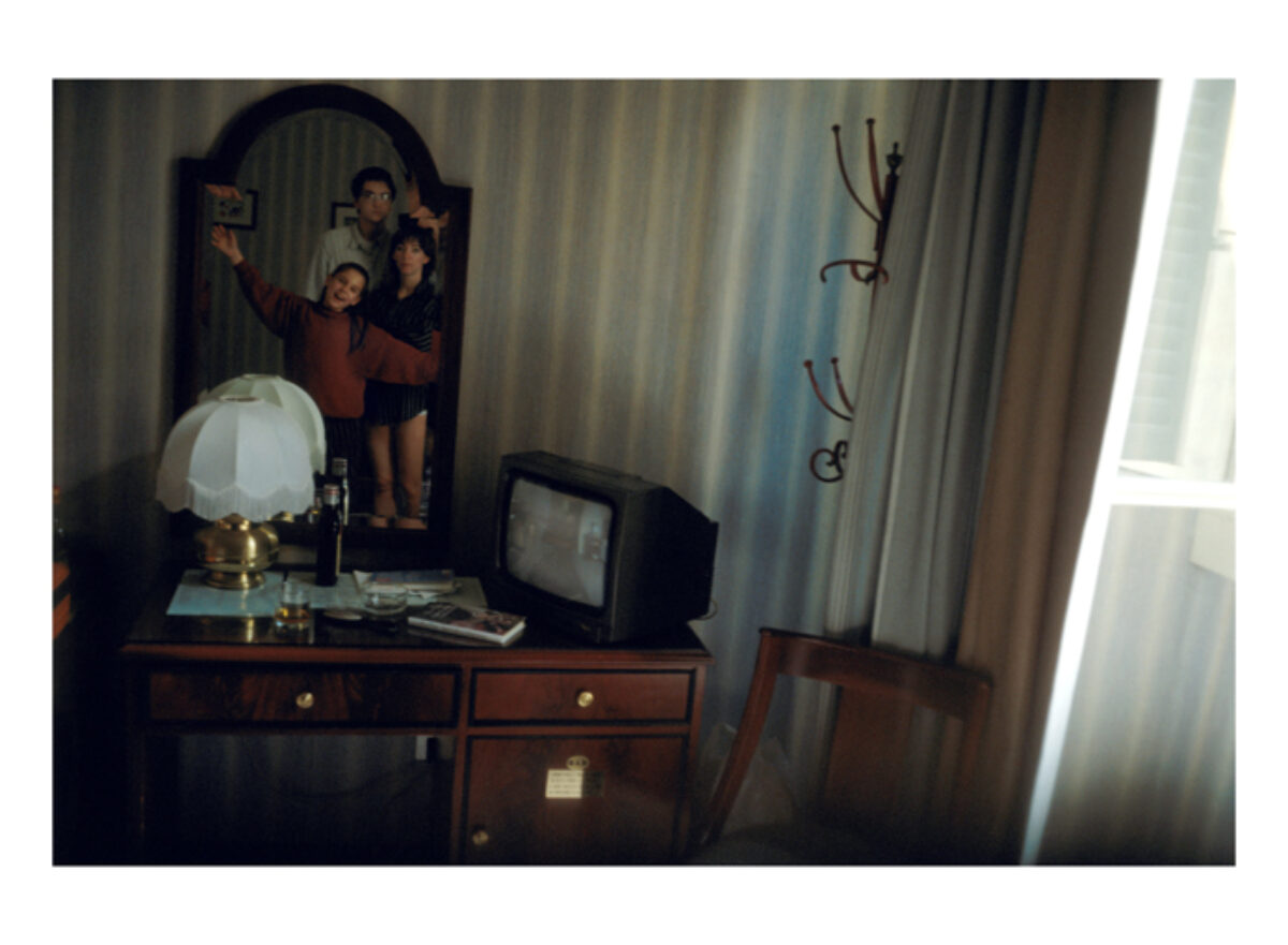 “The name of photography’s noeme will therefore be: ‘That-has-been’ … what I see has been here, in this place.” (Roland Barthes) Paris, 1979. A young couple photographs itself in a mirror at the Hotel Bohème. A short time later, they learn that the woman is pregnant. This photographic moment becomes an initiatory moment of life and art. Until 2013, Peter Lundström will repeatedly photograph his growing family on reflective surfaces located in public or semi-public spaces: on streets and squares, in trains or hotels. He creates low-angle and high-angle shots, photographs of shop window and images of funhouse mirrors—the kind existing since the 1920s. During that time of the photographic avant-garde, the artist Werner Gräff called on people to “no longer be afraid of reflections in photographs. Are there not enough examples in which reflections offer a special charm?” Gazing into the reflective surface, Lundström and his wife, the artist Anna Kristensen, look out of the picture at the viewer. The dividing and connecting line between the couple finds its correspondence between the couple and us, the recipient. Through the transparent border of the photograph, the viewer looks into a mirror that reflects not his gaze, but that of a stranger. A Lacanian horizon is thus opened for the people in the picture and for those outside it. The couple’s dual gaze onto itself strengthens the awareness of togetherness. With the encounter and differentiation of one’s own gaze with that of a stranger, commonalities and differences become clear to the viewer as well. Not only do the photographs allow us to follow the couple on their travels to various countries, but they also take us on a journey through time. The motionless faces grow older; the daughters grow taller. Roland Barthes described the photograph as “an image which produces death while trying to preserve life.” In his nearly 30-year series, Lundström exponentially reveals this aspect of photography. By “keeping his eyes focused firmly” on life, he inexorably evokes the fleeting nature of the moment and the end of all being.