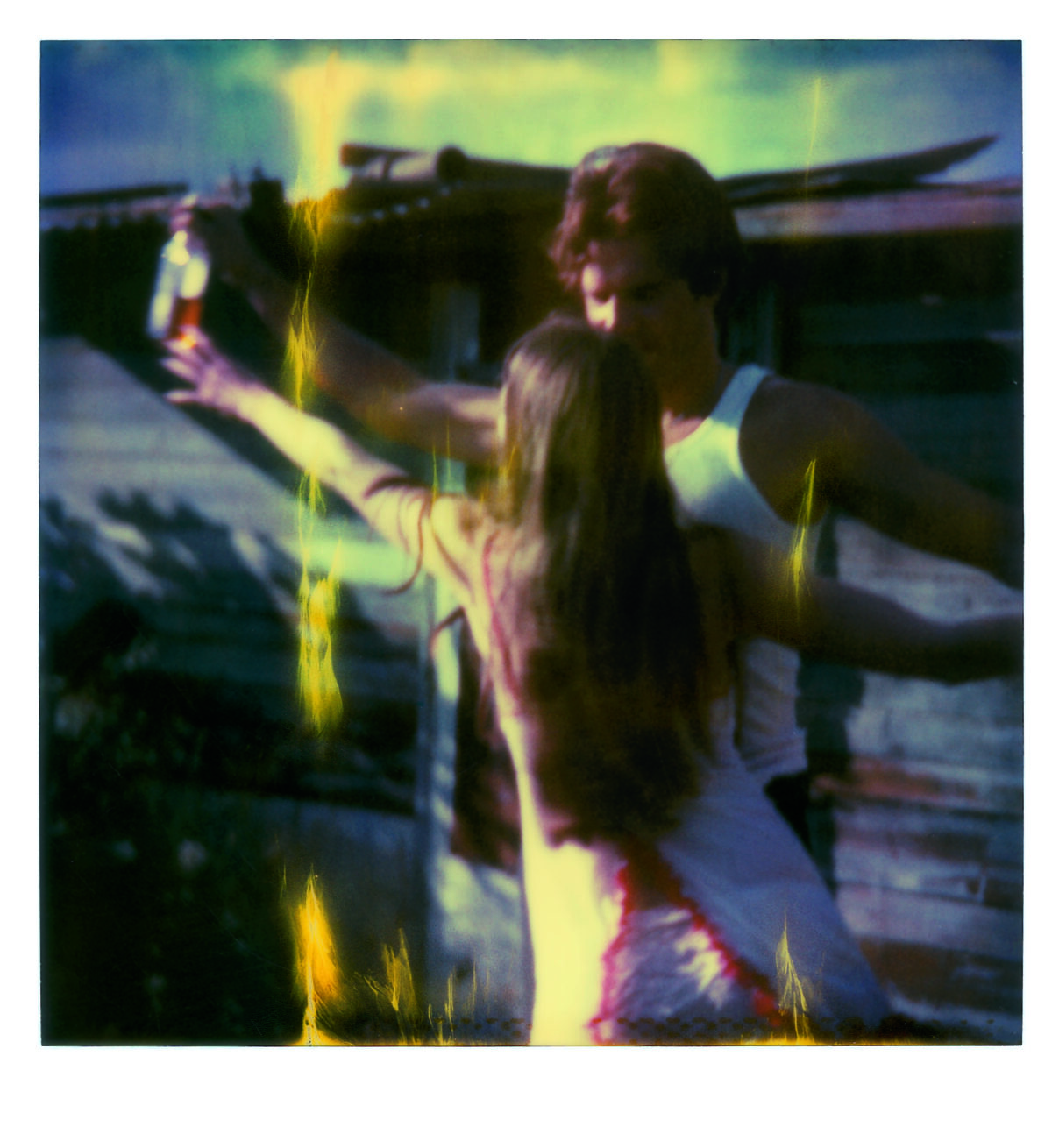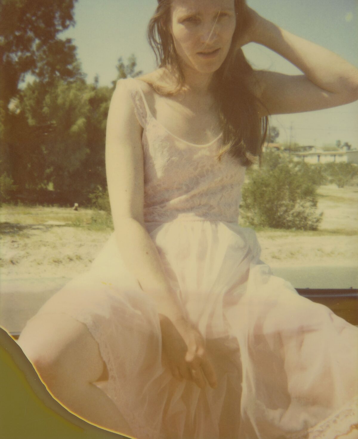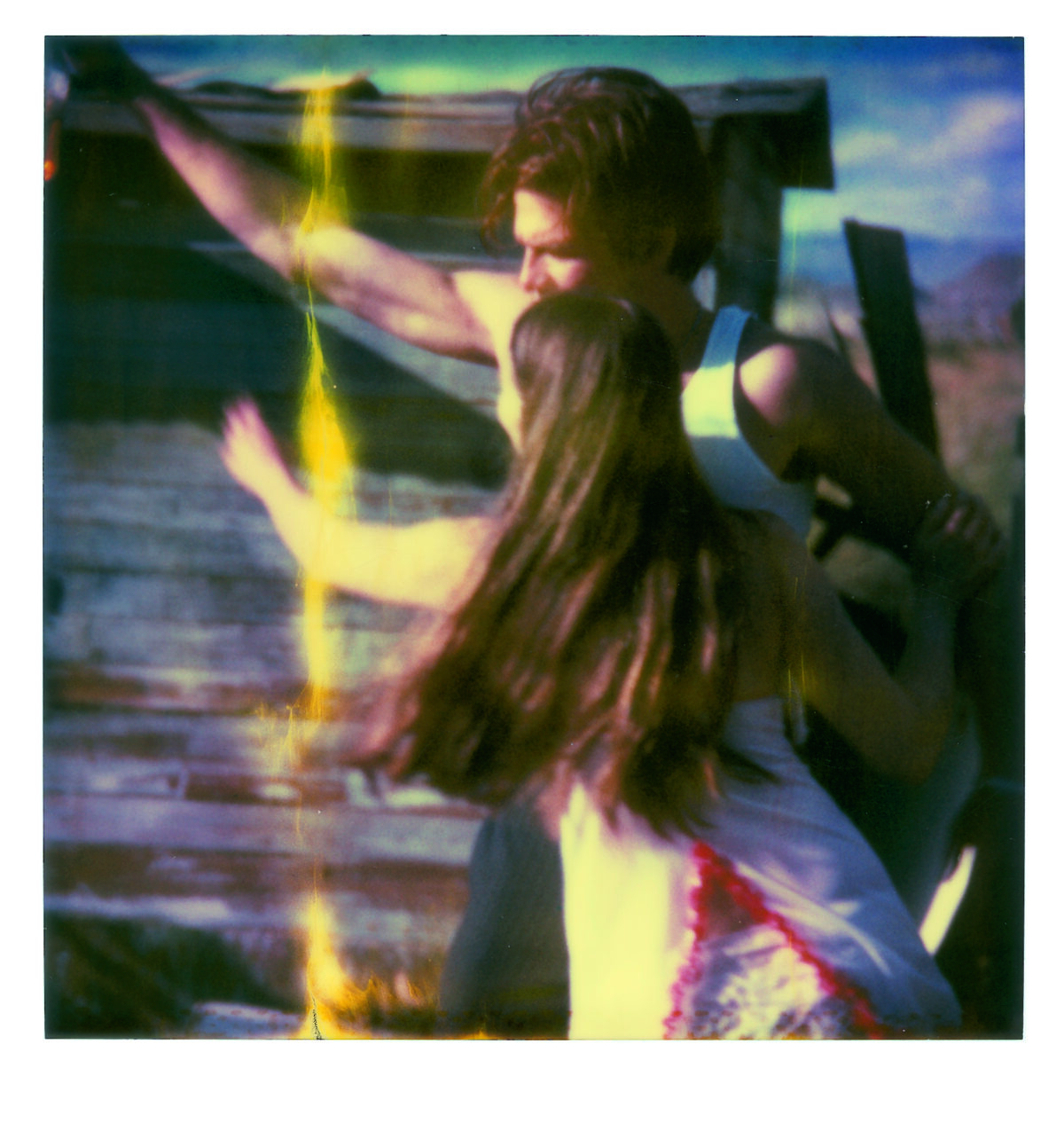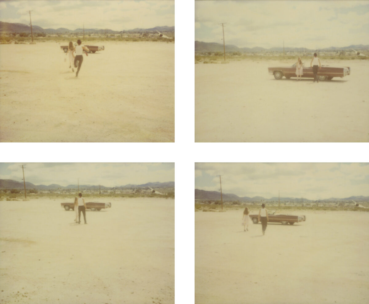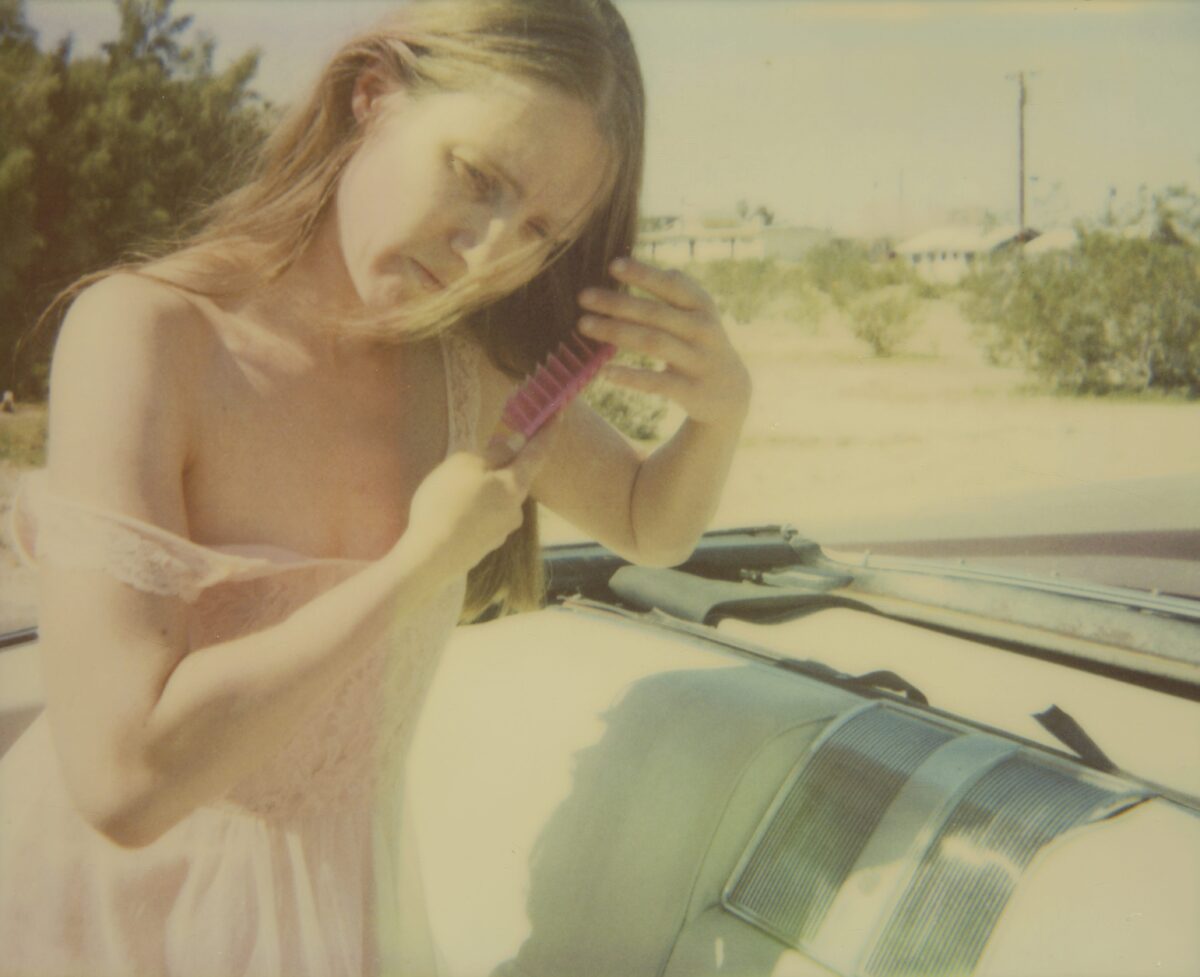 “Chance in my work is like chance in my life. Everything in my life so far has happened by chance, and most of the time it was good. I let chance happen, and in the same way I let chance happen in my photography. I work with and try to perfect chance.” Chance, as artist Stefanie Schneider describes it in relation to her art and her life, is reflected both in the material as well as the subject matter of her photographic works. By chance, Schneider happened upon a package of expired Polaroid films that were such a bargain that she bought them even though she didn’t even have the right camera. The film’s chemical deterioration makes itself felt in its faulty development. The Polaroids are smeared, spotted, out of focus, with uneven, often faded, color reproduction. Schneider captures the temporary state of the ongoing development process in enlarged photographs of the Polaroids. The individual photographs and series were taken in the American Southwest, where she had gone after her studies, originally to work as a film editor. In its aesthetics and subject matter, the apparent “patina” on her pictures and scenes of permissive sexuality in the trailer park environment of the periphery is reminiscent of scenes from the hippie communities of the seventies (when Polaroids were ubiquitous). In fact, however, these photographic sequences resembling movie stills and with titles such as Sucking and Brushing or Bells Ringing were made in 2005 and reflect the dull and monotonous American Way of Life in the marginal environments of suburbs and desert and scrub landscapes. That year, Schneider created a series of works based on an affair with a man whom she asked via the internet to spend five weeks with her in the desert of Southern California. The resulting photographic novels Hitchhikers, Sidewinder and René’s Dream document the emotional and sexual development of this encounter, and are accompanied by music and poetic texts on DVD. Schneider allows the coincidences of life to intervene creatively into her artistic work—which, in turn, intervenes creatively in her life. Chance is thus—as in her photo-projects for which she invites friends or actors and lets events run their course—preceded by an arrangement of constellations. Perhaps this is what she means when she talks about wanting to perfect chance.