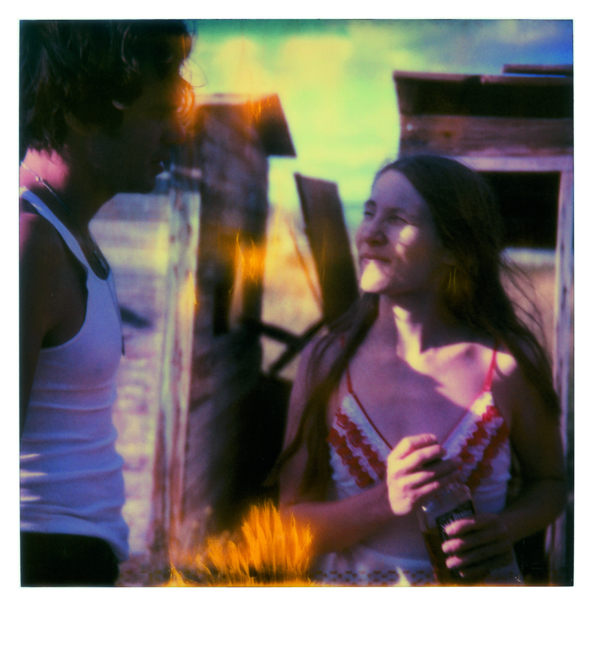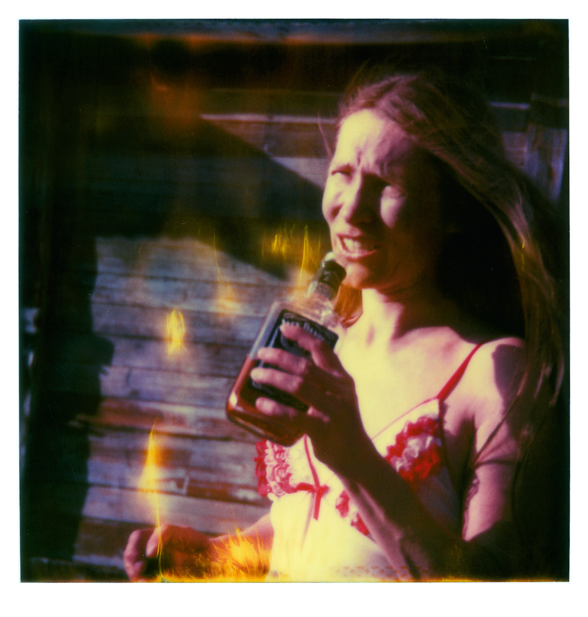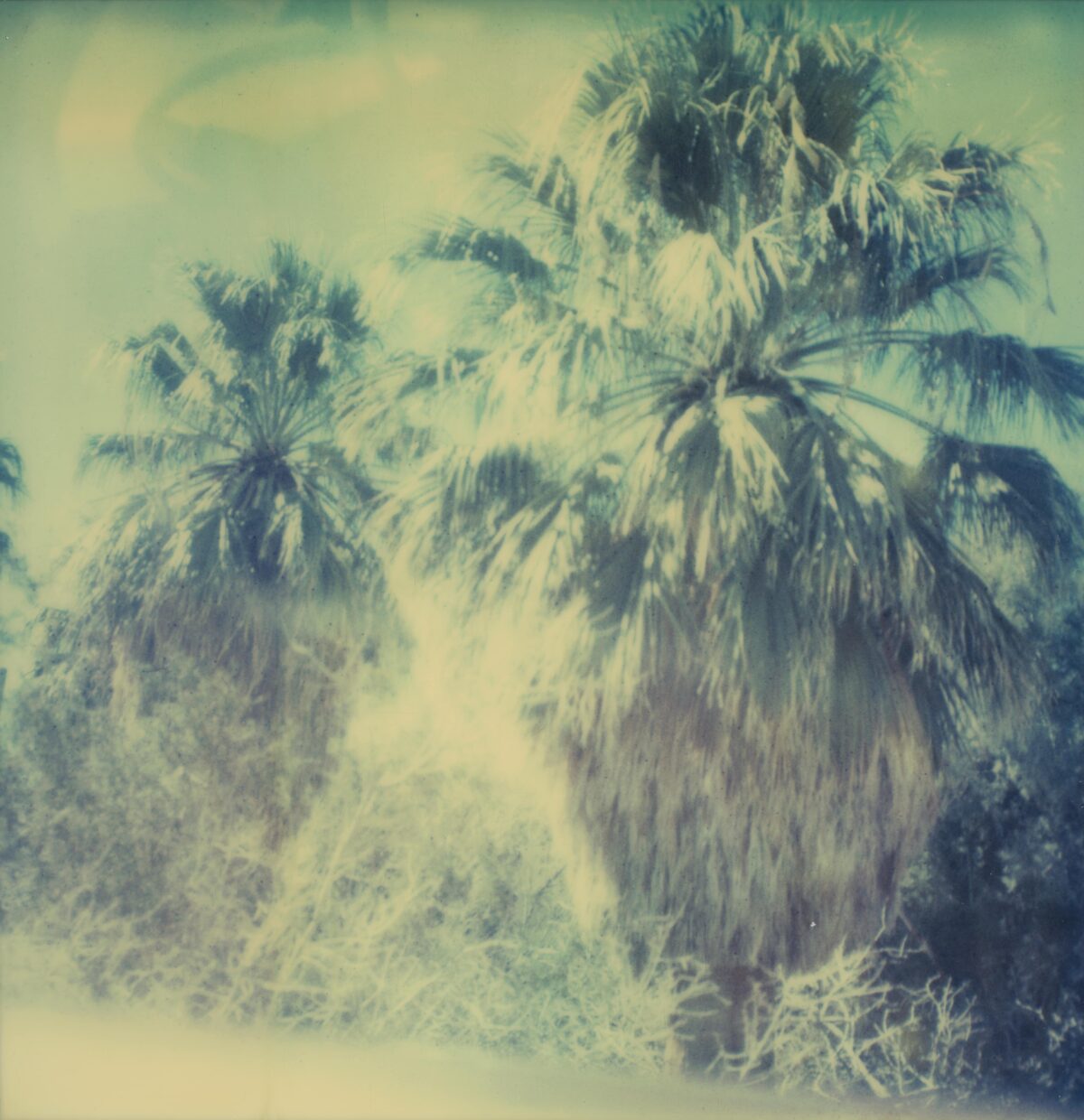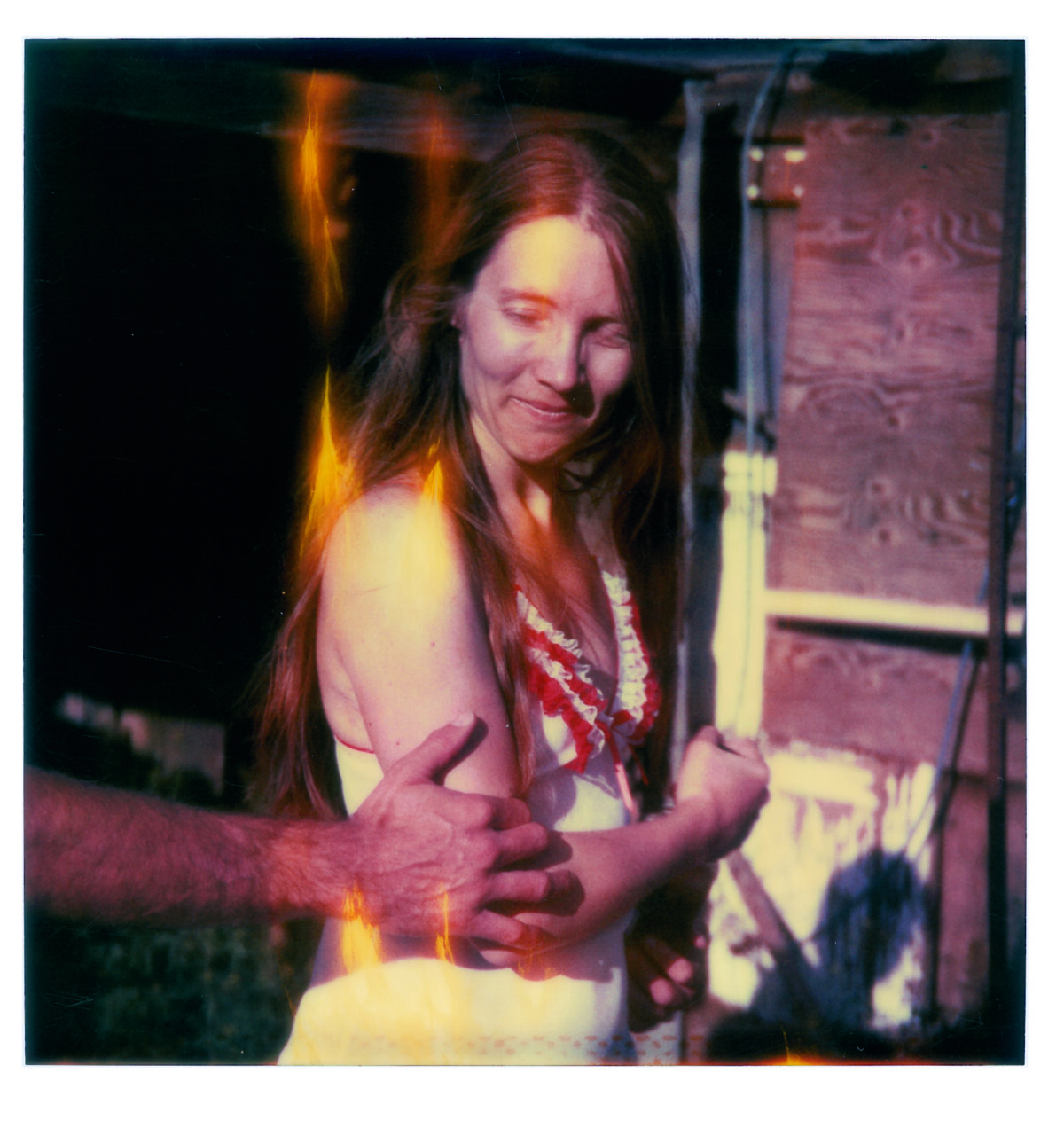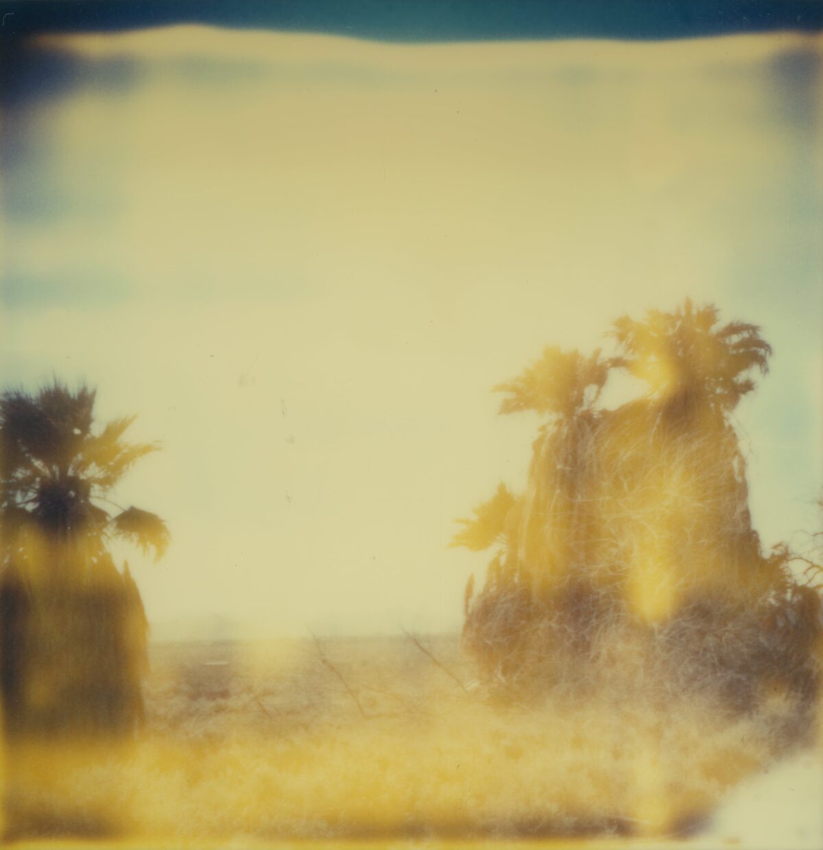 “Chance in my work is like chance in my life. Everything in my life so far has happened by chance, and most of the time it was good. I let chance happen, and in the same way I let chance happen in my photography. I work with and try to perfect chance.” Chance, as artist Stefanie Schneider describes it in relation to her art and her life, is reflected both in the material as well as the subject matter of her photographic works. By chance, Schneider happened upon a package of expired Polaroid films that were such a bargain that she bought them even though she didn’t even have the right camera. The film’s chemical deterioration makes itself felt in its faulty development. The Polaroids are smeared, spotted, out of focus, with uneven, often faded, color reproduction. Schneider captures the temporary state of the ongoing development process in enlarged photographs of the Polaroids. The individual photographs and series were taken in the American Southwest, where she had gone after her studies, originally to work as a film editor. In its aesthetics and subject matter, the apparent “patina” on her pictures and scenes of permissive sexuality in the trailer park environment of the periphery is reminiscent of scenes from the hippie communities of the seventies (when Polaroids were ubiquitous). In fact, however, these photographic sequences resembling movie stills and with titles such as Sucking and Brushing or Bells Ringing were made in 2005 and reflect the dull and monotonous American Way of Life in the marginal environments of suburbs and desert and scrub landscapes. That year, Schneider created a series of works based on an affair with a man whom she asked via the internet to spend five weeks with her in the desert of Southern California. The resulting photographic novels Hitchhikers, Sidewinder and René’s Dream document the emotional and sexual development of this encounter, and are accompanied by music and poetic texts on DVD. Schneider allows the coincidences of life to intervene creatively into her artistic work—which, in turn, intervenes creatively in her life. Chance is thus—as in her photo-projects for which she invites friends or actors and lets events run their course—preceded by an arrangement of constellations. Perhaps this is what she means when she talks about wanting to perfect chance.
