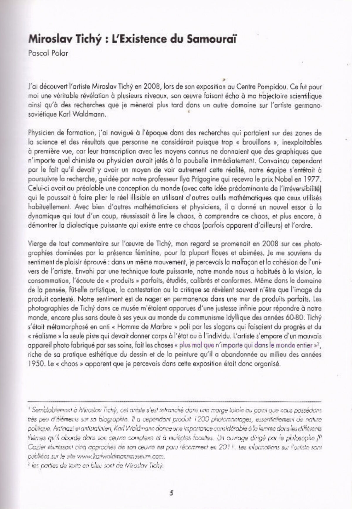 Miroslav Tichy, sans le précieux travail de Roman Buxbaum qui a sauvegardé et diffusé son œuvre, n’aurait peut-être jamais été révélé et sa mémoire serait restée à Kyiov, sa petite ville natale, pour disparaître rapidement des souvenirs des habitants qui le considé raient comme le « mauvais exemple » : ce paria aux cheveux longs et aux vêtements noirs et déchirés, cet archétype de l’autre et du ridicule…